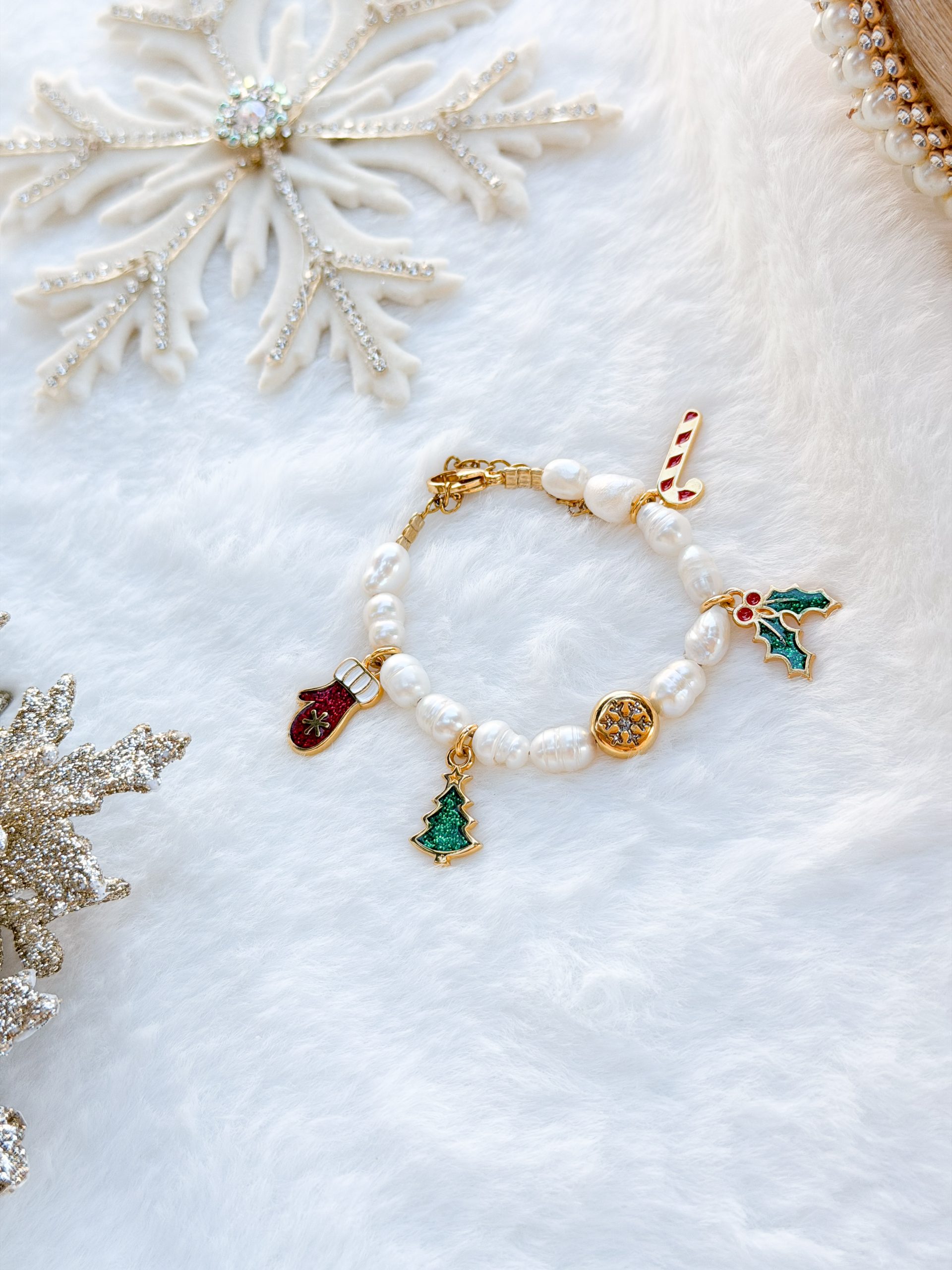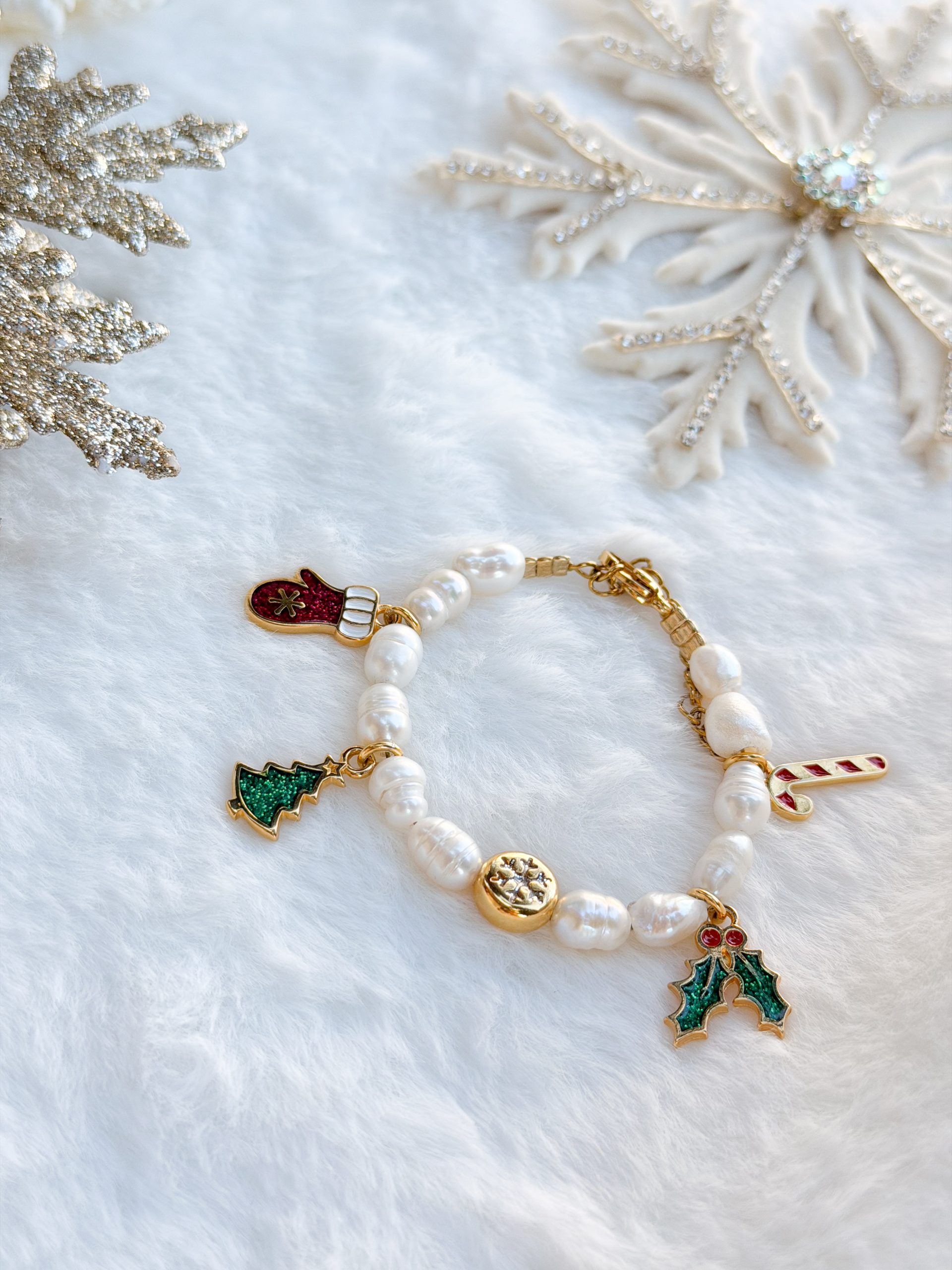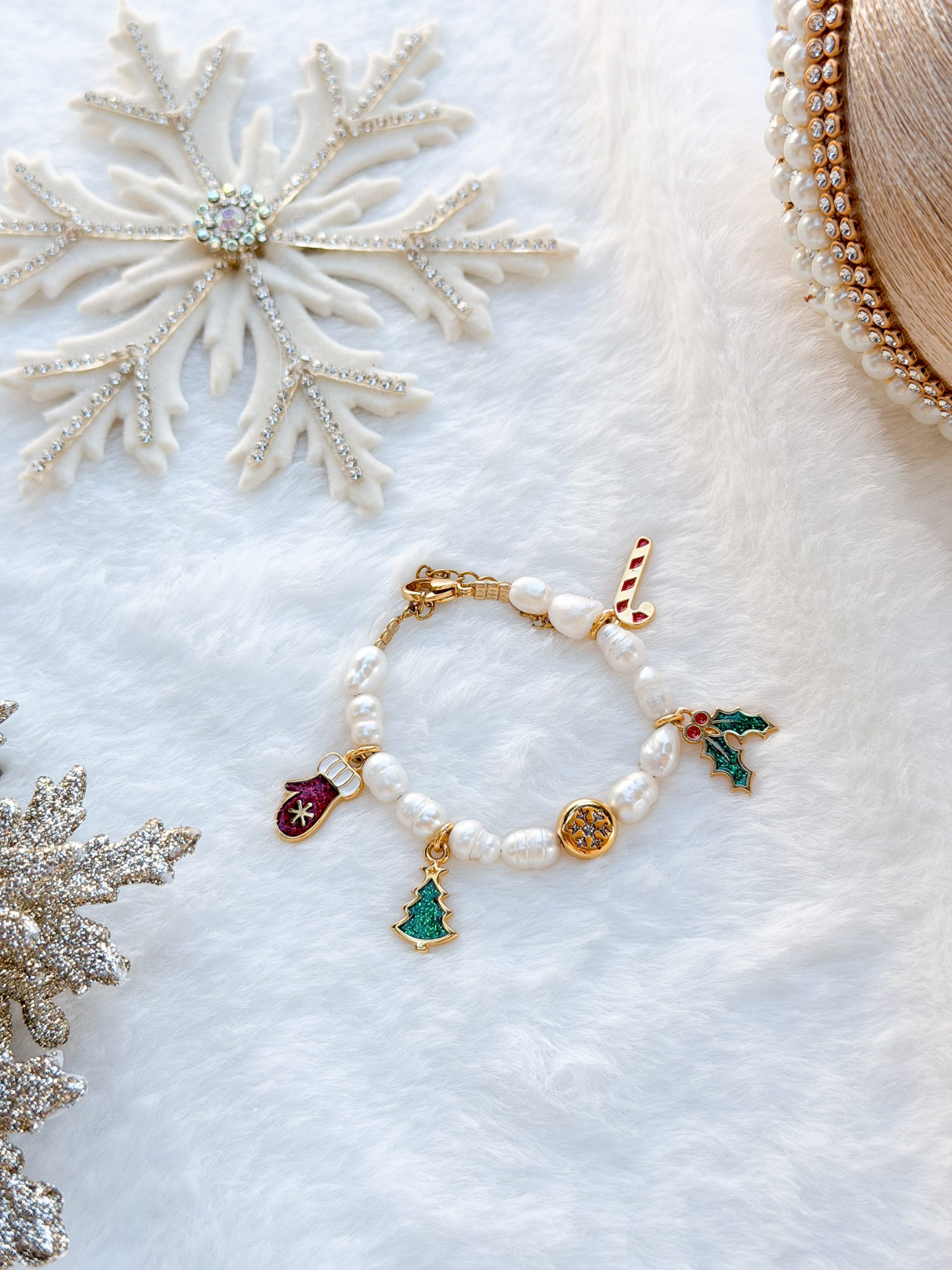 Βραχιολάκι με μαργαριτάρια και κρεμαστά επιχρυσωμένα μοτίφ.