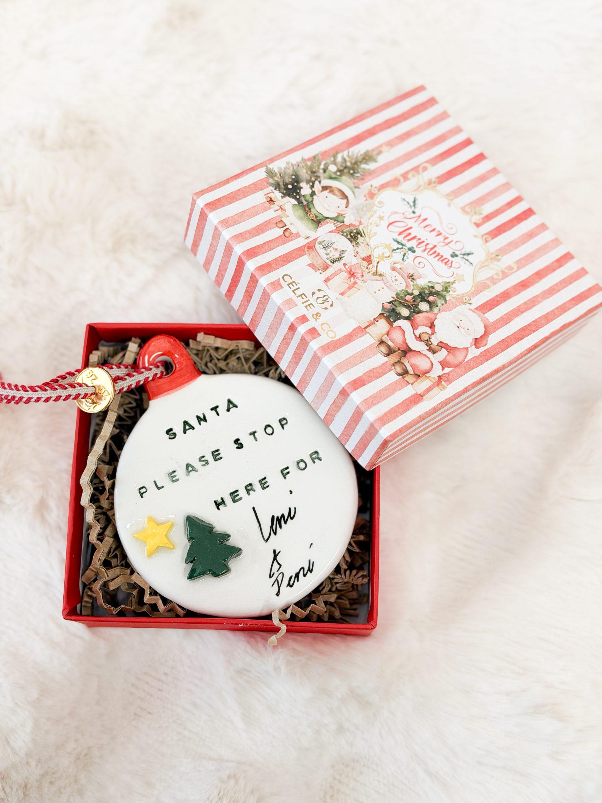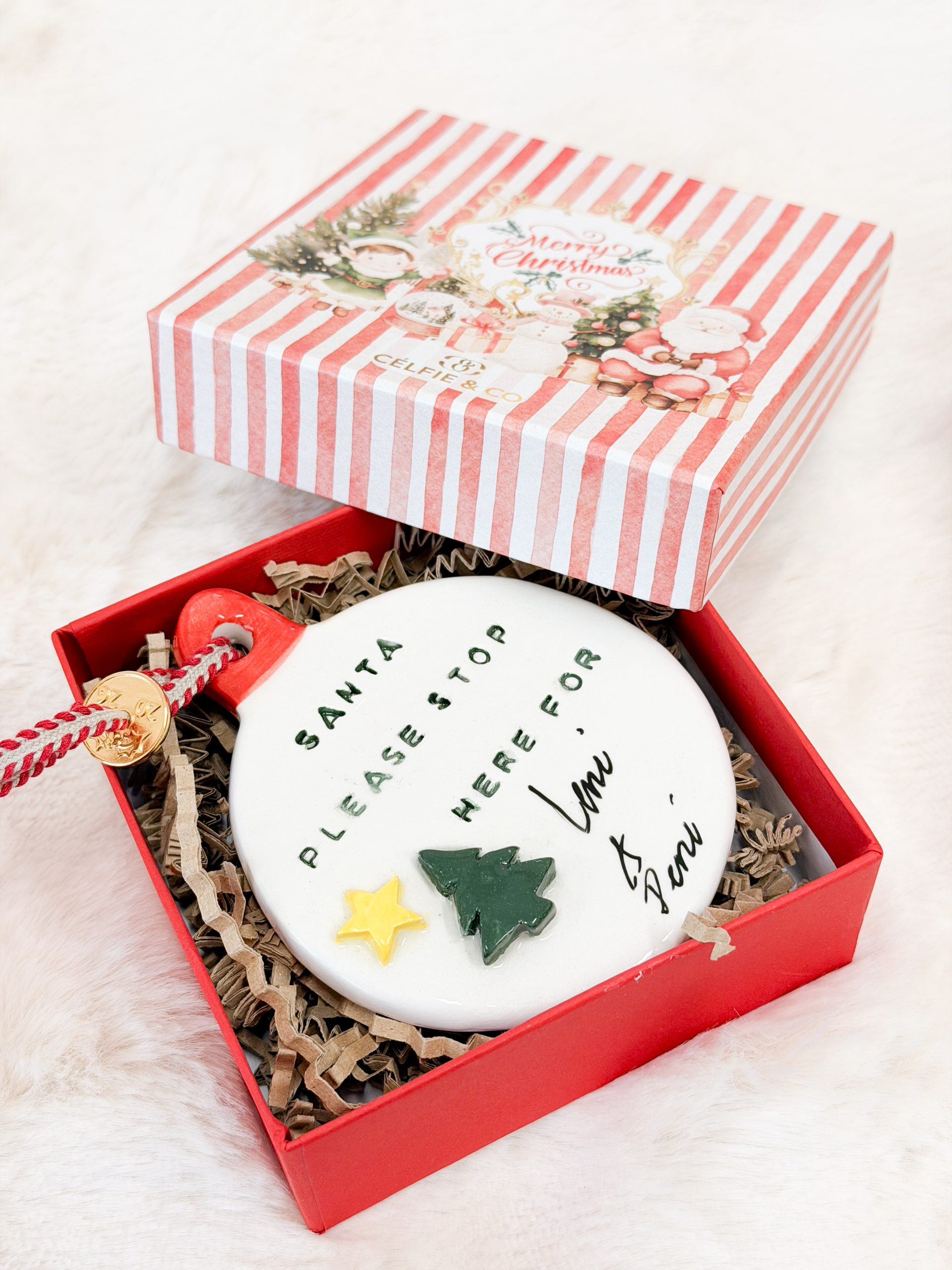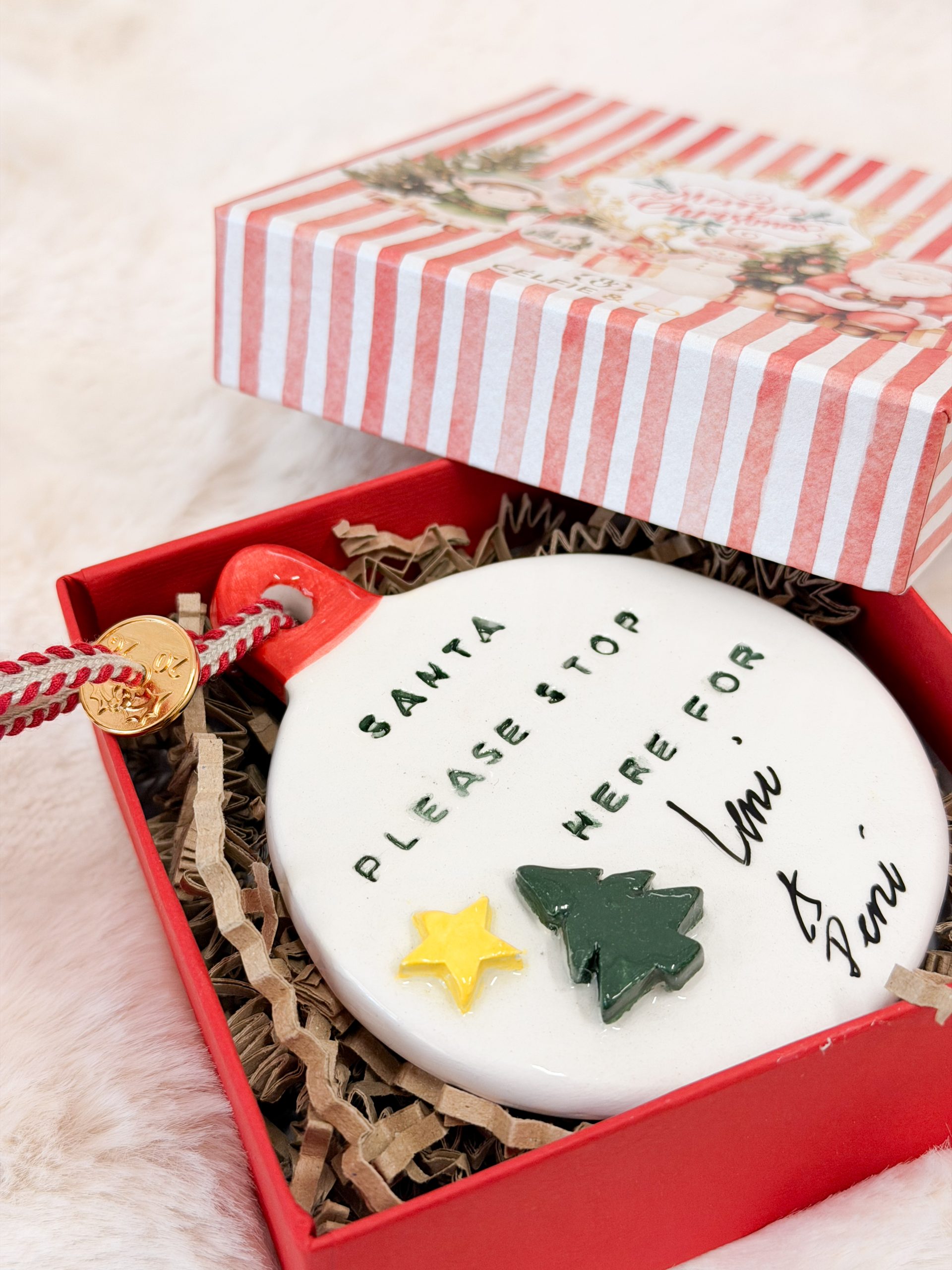 Χειροποίητο κεραμικό στολίδι για το δέντρο.Μπορούμε να γράψουμε επάνω οποίο όνομα επιθυμείτε.Απο εμάς χρειάζονται περίπου 7 εργάσιμες ημέρες για την παρασκευή τους.Θα ήθελα να γνωρίζεται ότι επειδή είναι χειροποίητα θα διαφέρουν λίγο με βάση την φωτογραφία.Για να ξεκινήσει η επεξεργασία τους θα χρειαστούμε μια προκαταβολή.