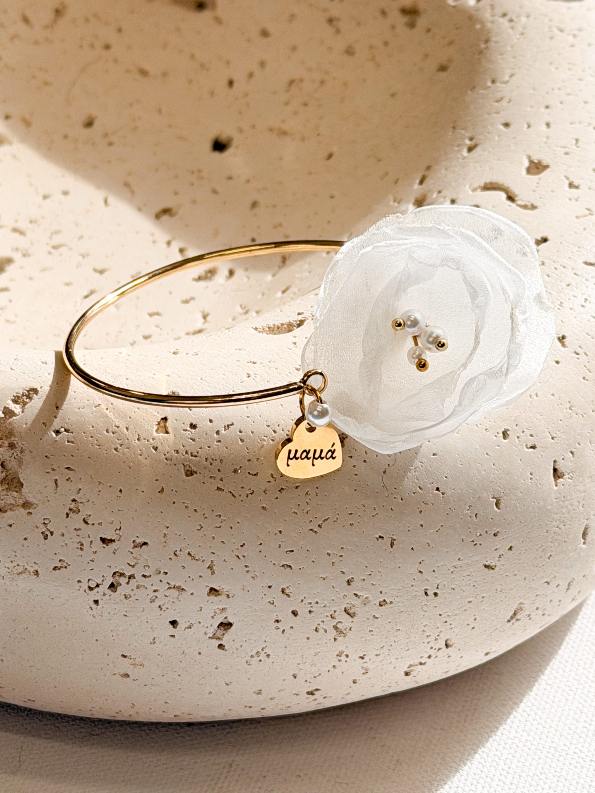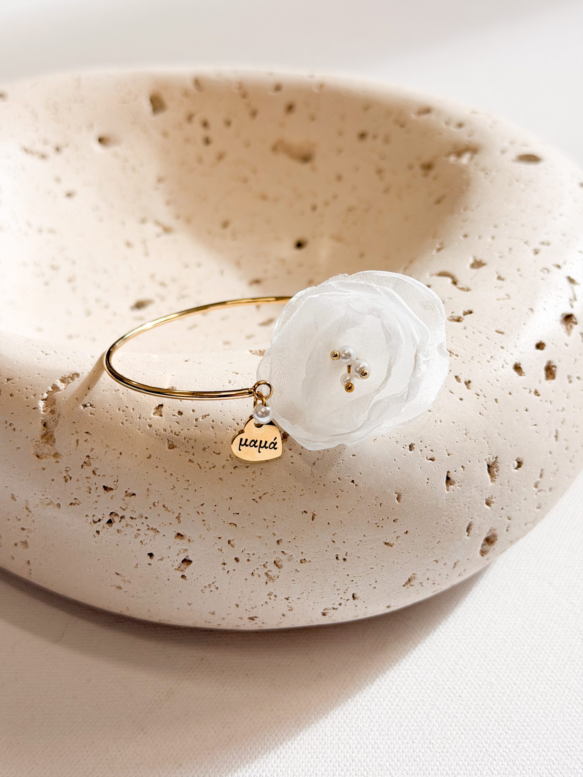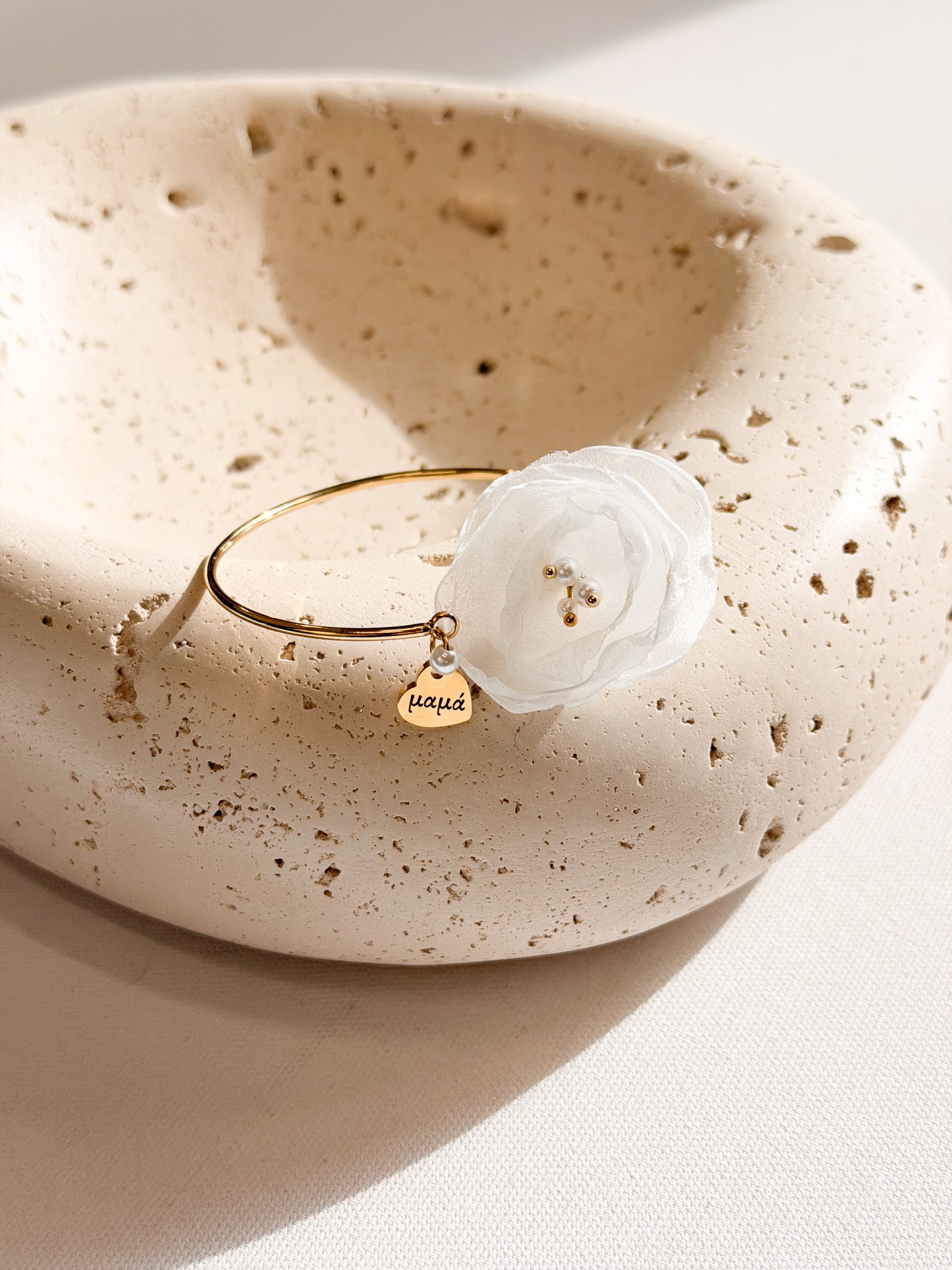 Βραχιολάκι για την μαμά και την νονά με χειροποίητο λουλούδι.