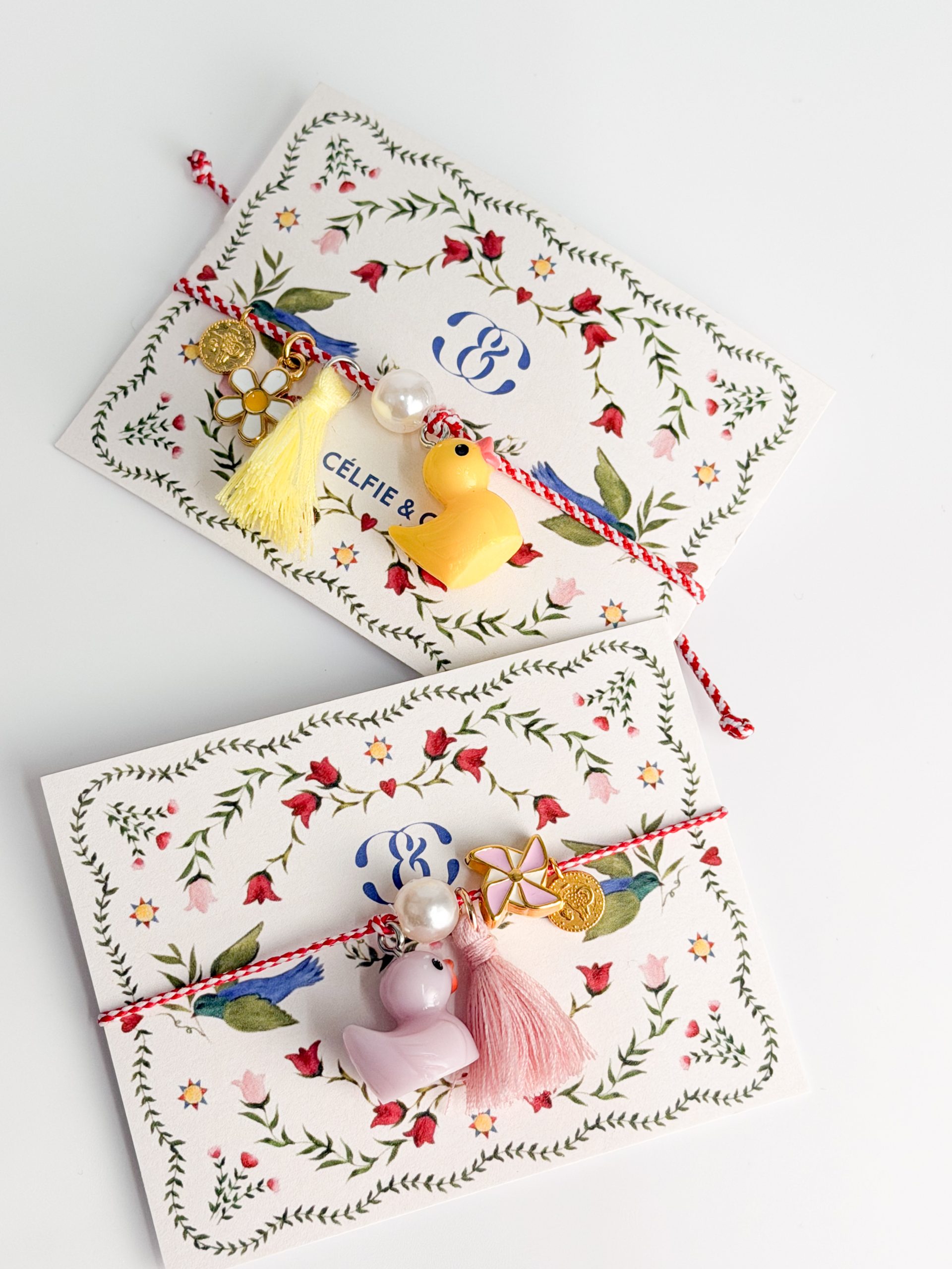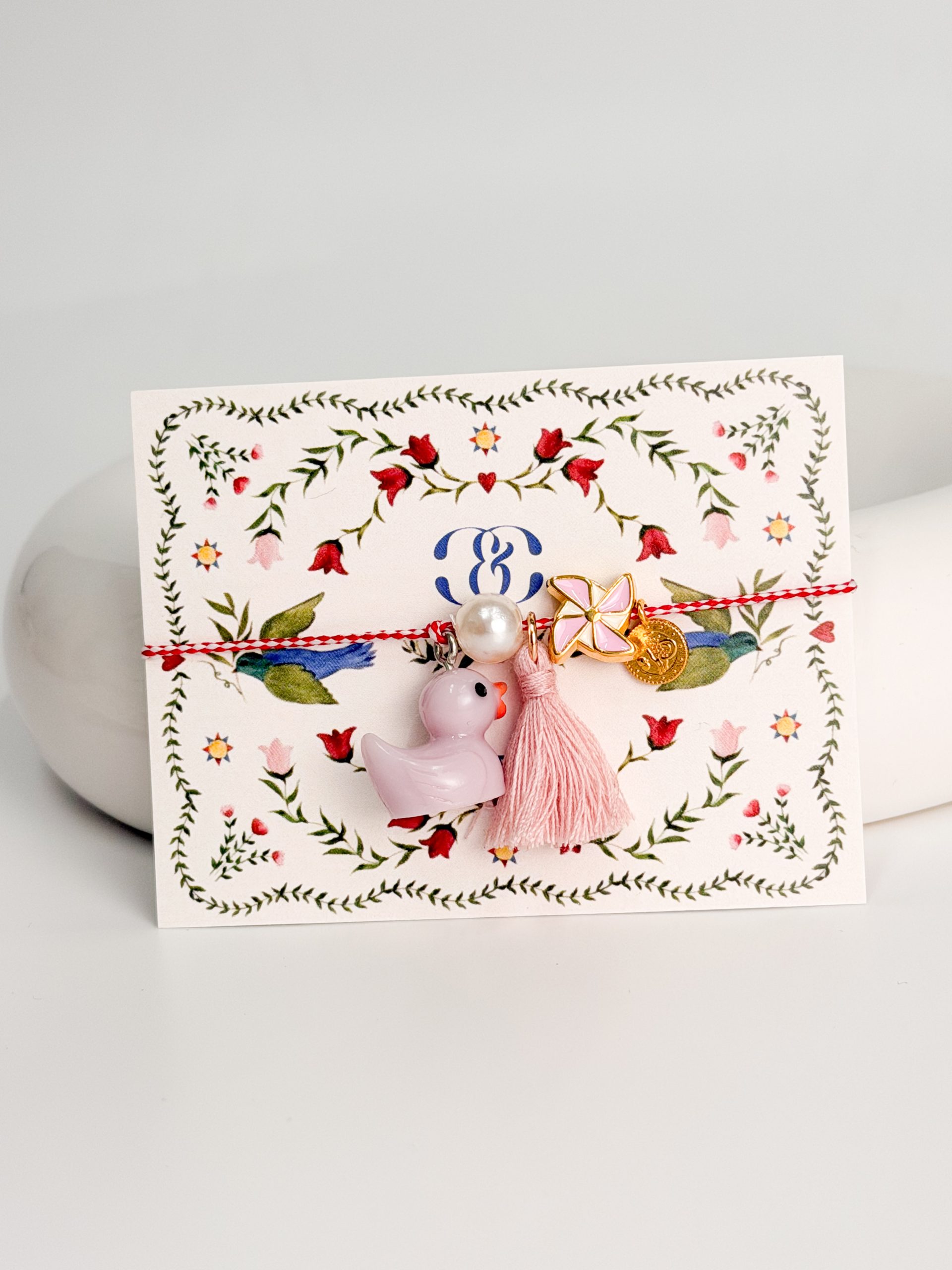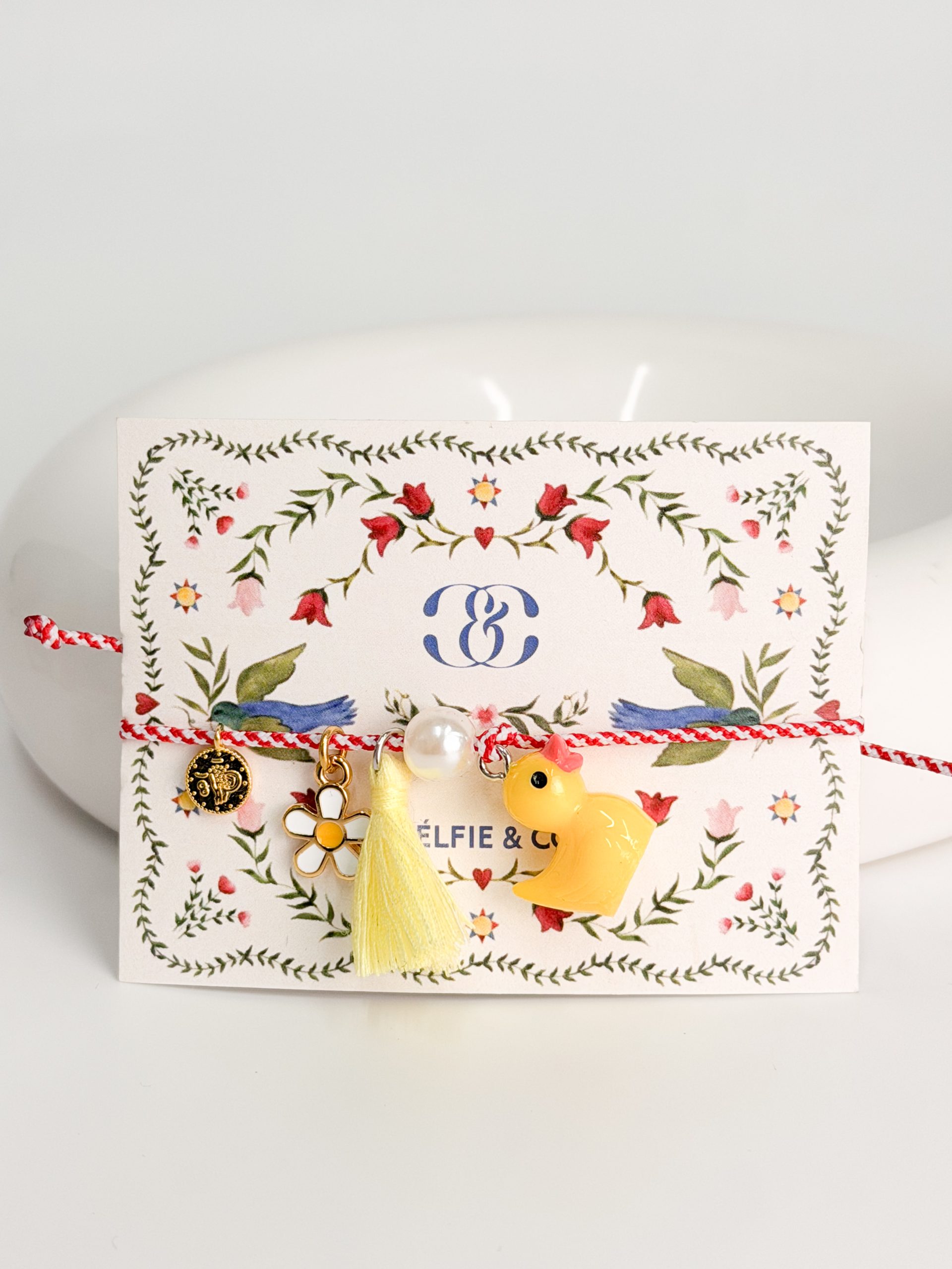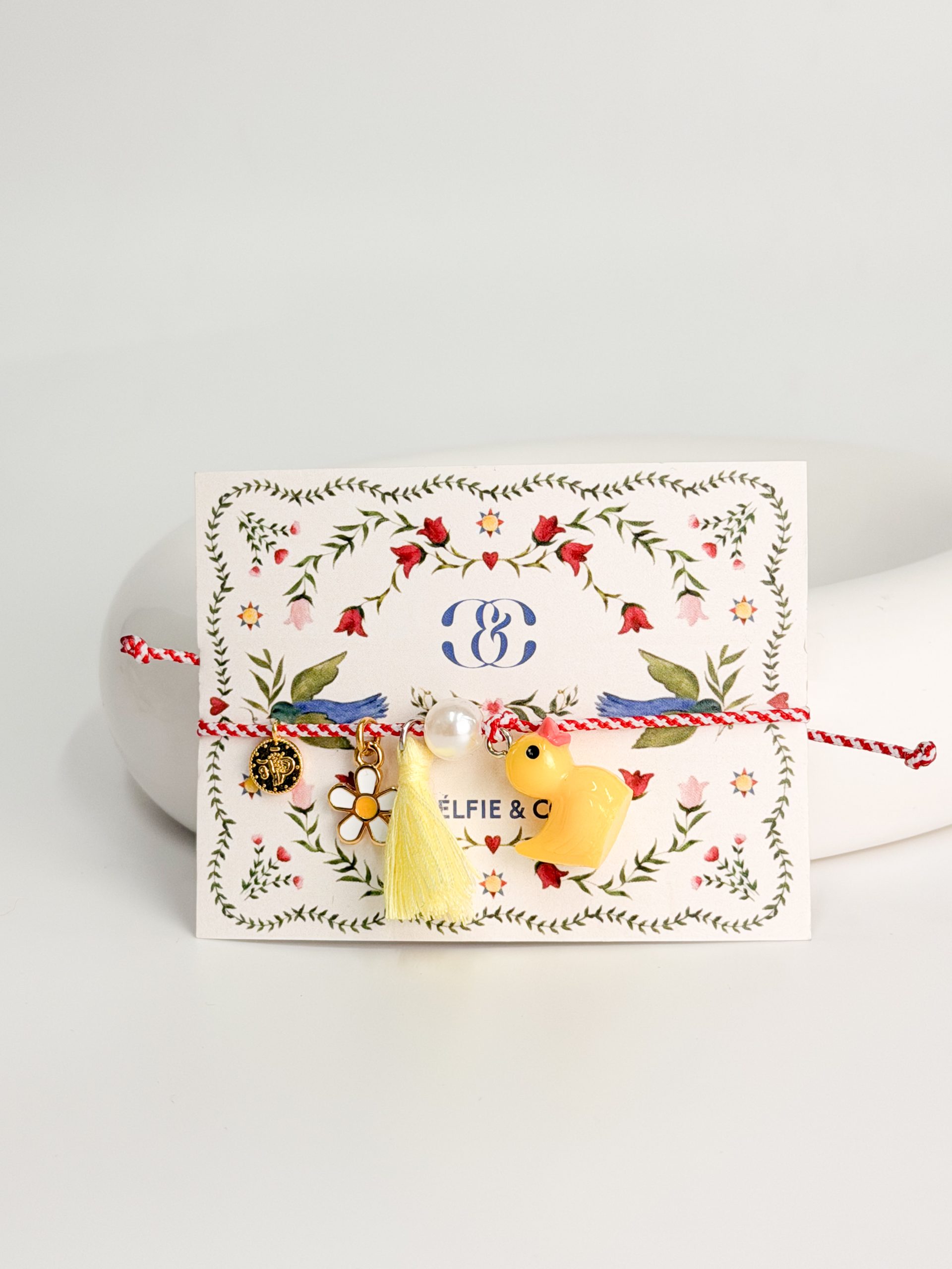 Μαρτάκι με μοτιφ παπάκι και φούντα.