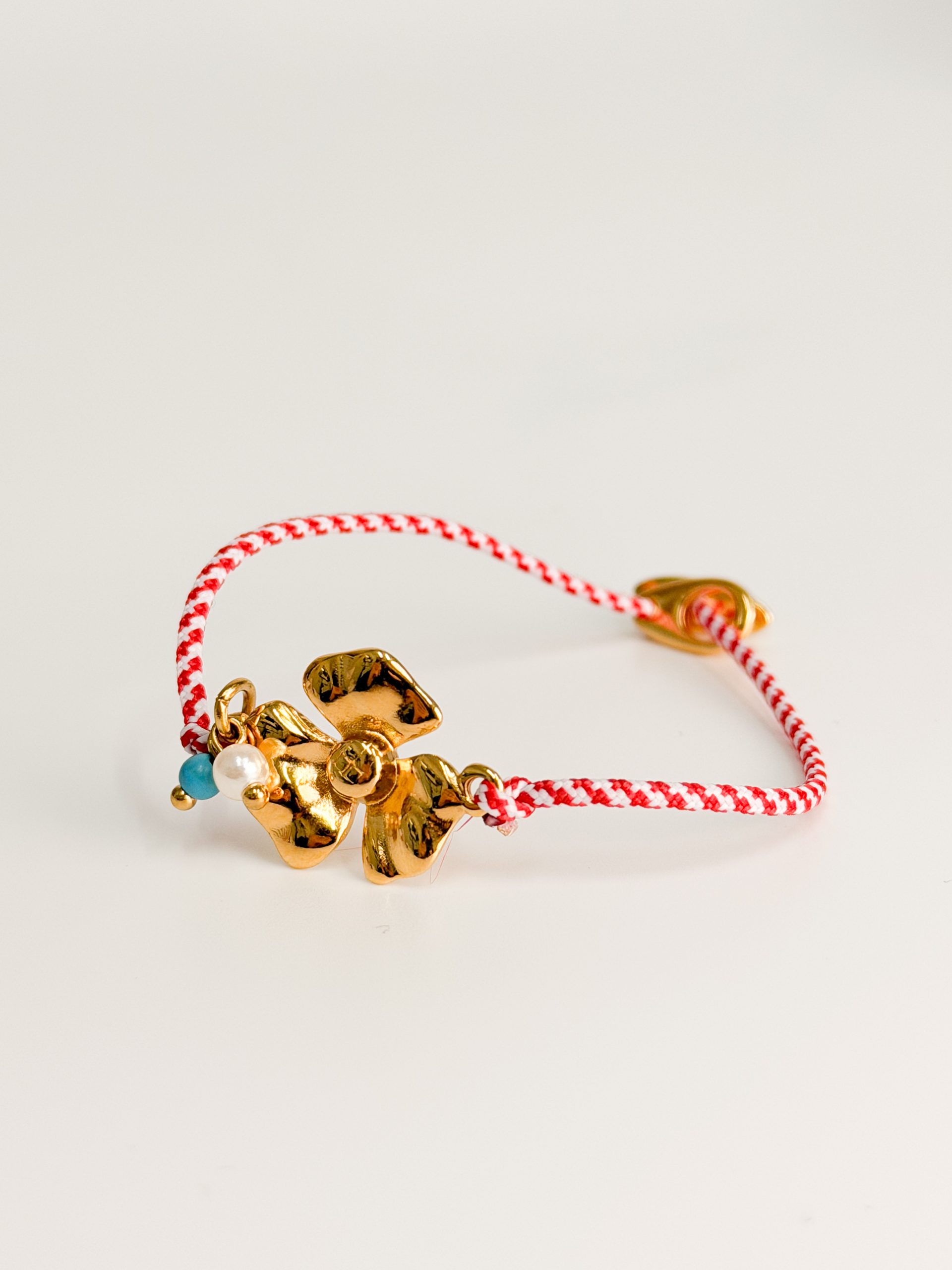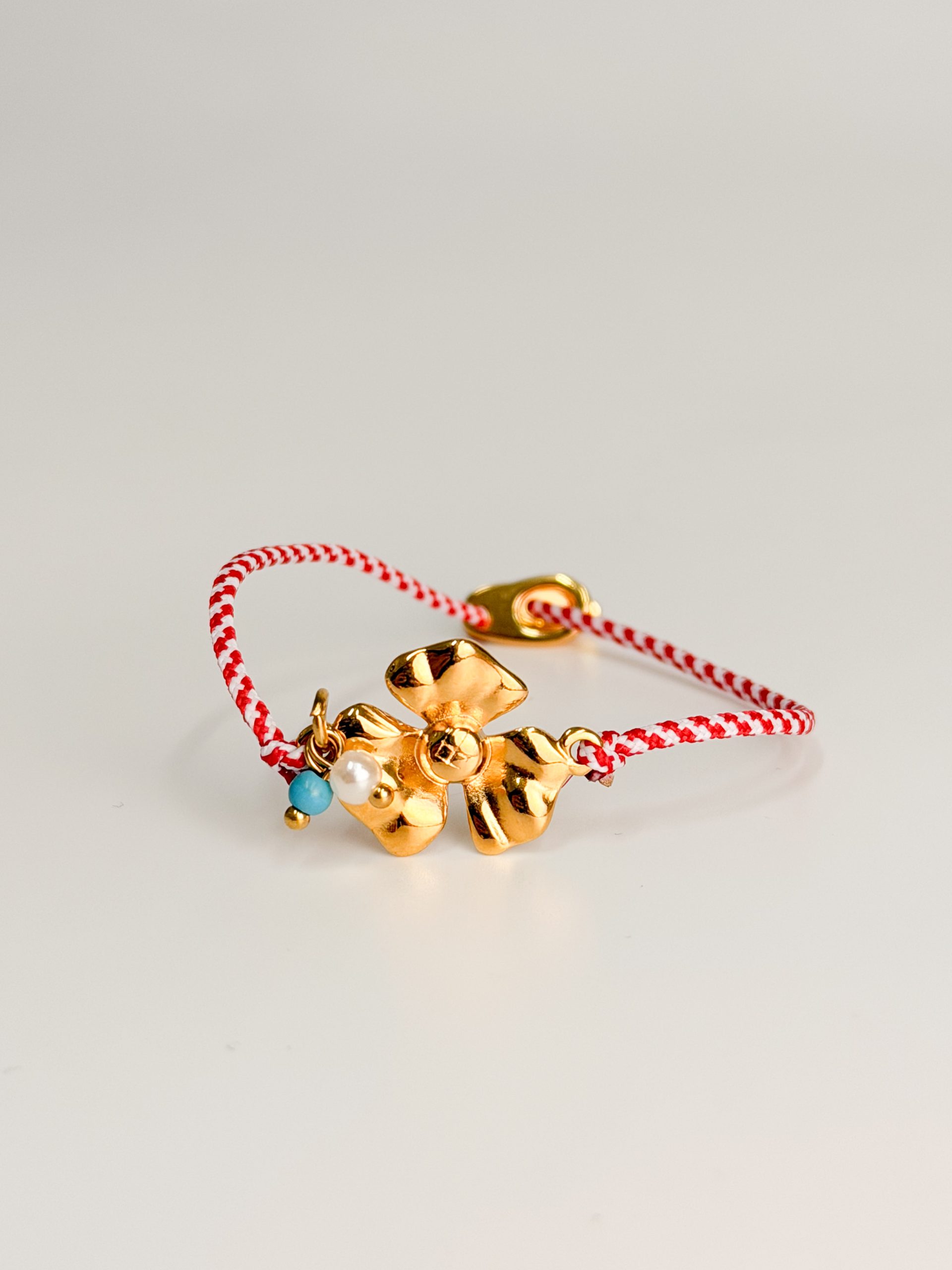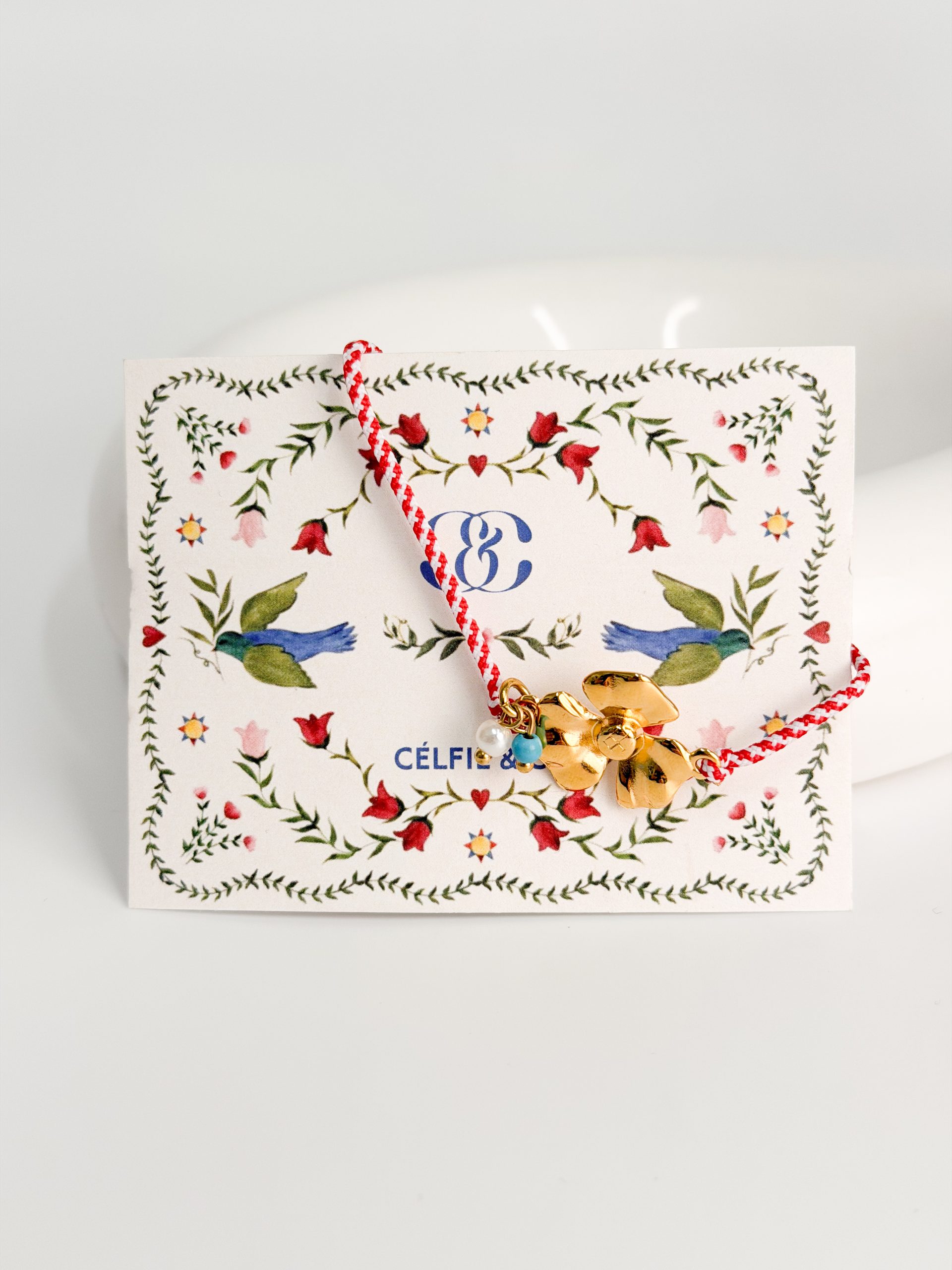 Μαρτάκι με επιχρυσωμένο μοτιφ λουλούδι,πέρλα και χάντρα χαολίτη.