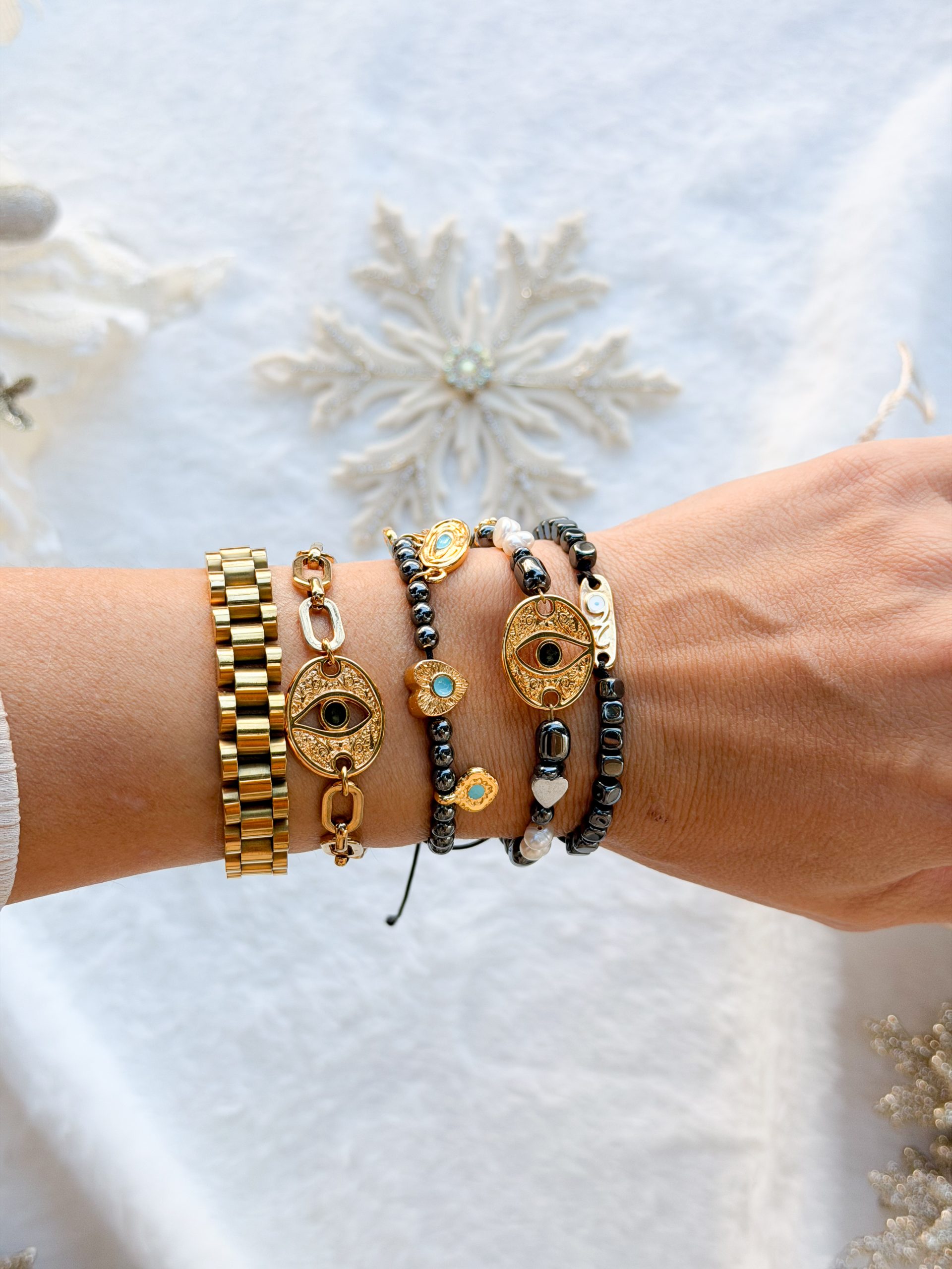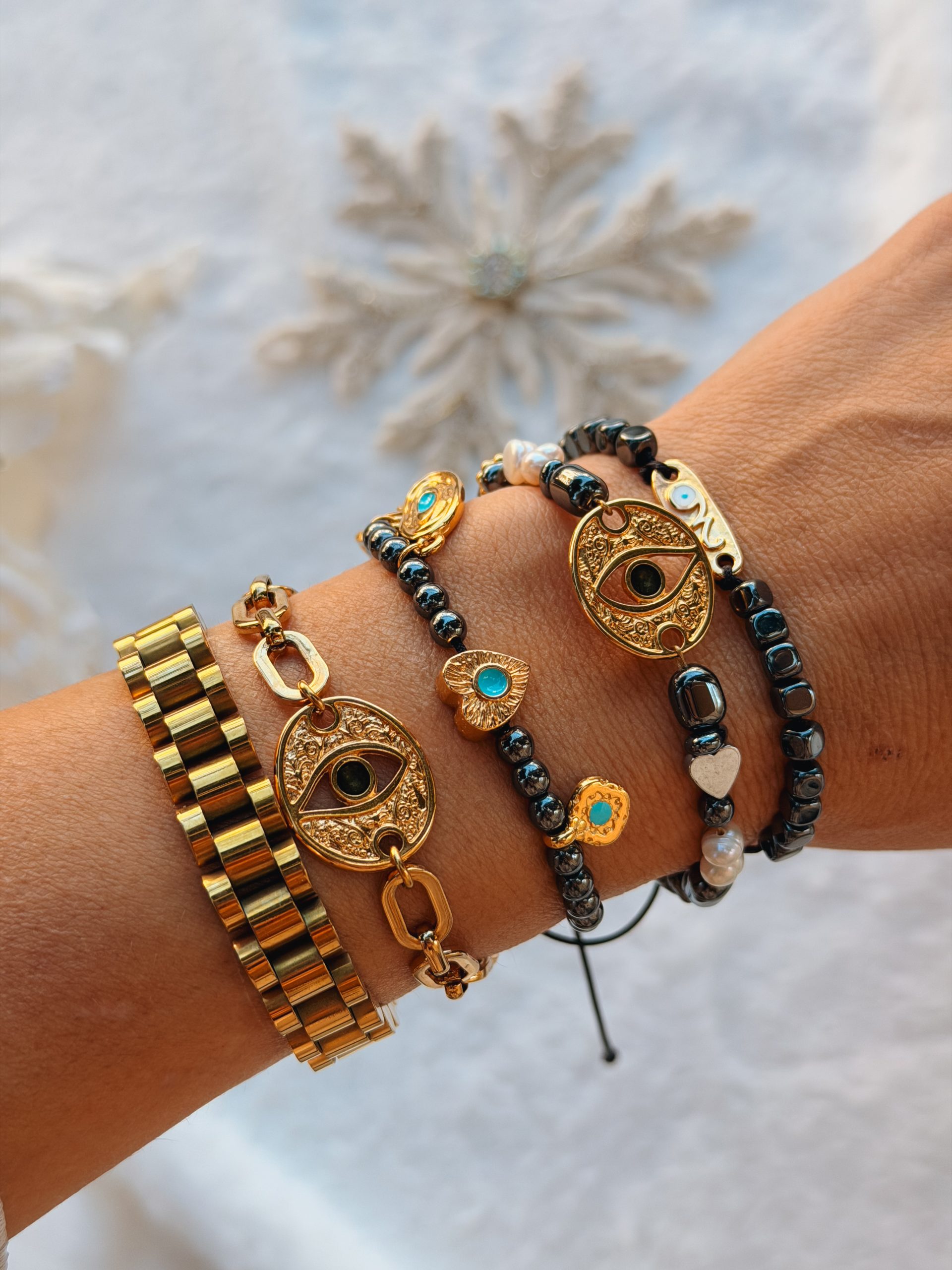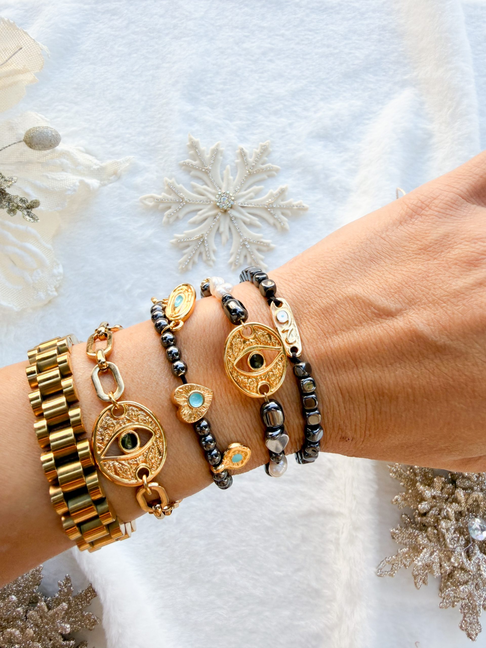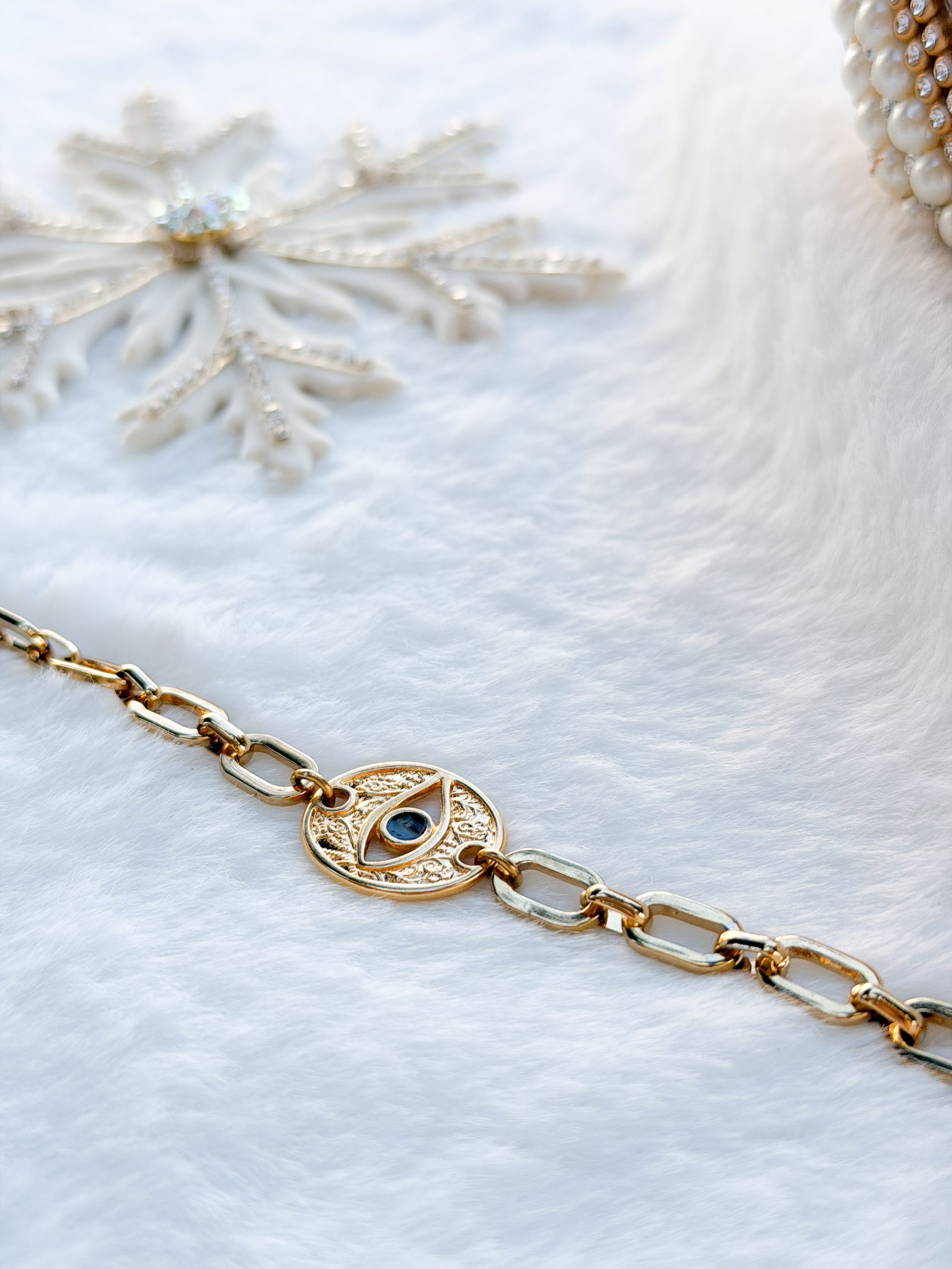 Βραχιολάκι με αλυσίδα χοντρή,μοτιφ επιχρυσωμένα μάτι και 26άρι.