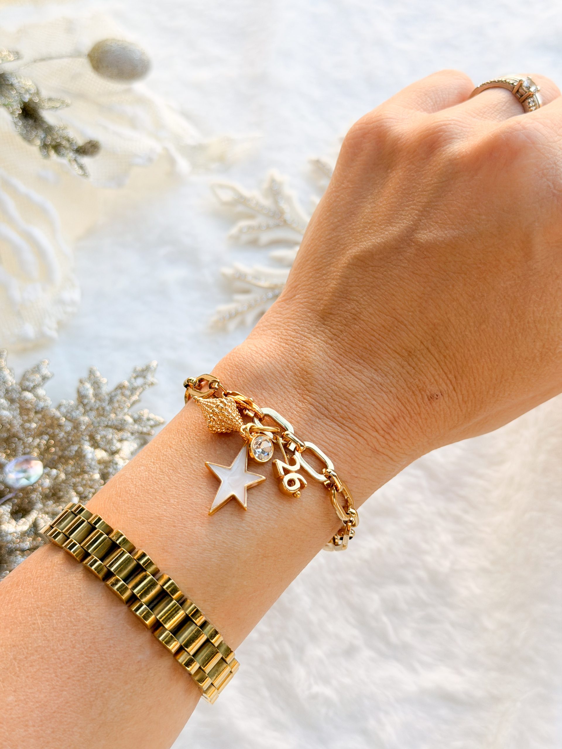 Βραχιολάκι με μοτιφ αστέρι,26άρι,σβαρόφσκι,χρυσό μοτιφ.