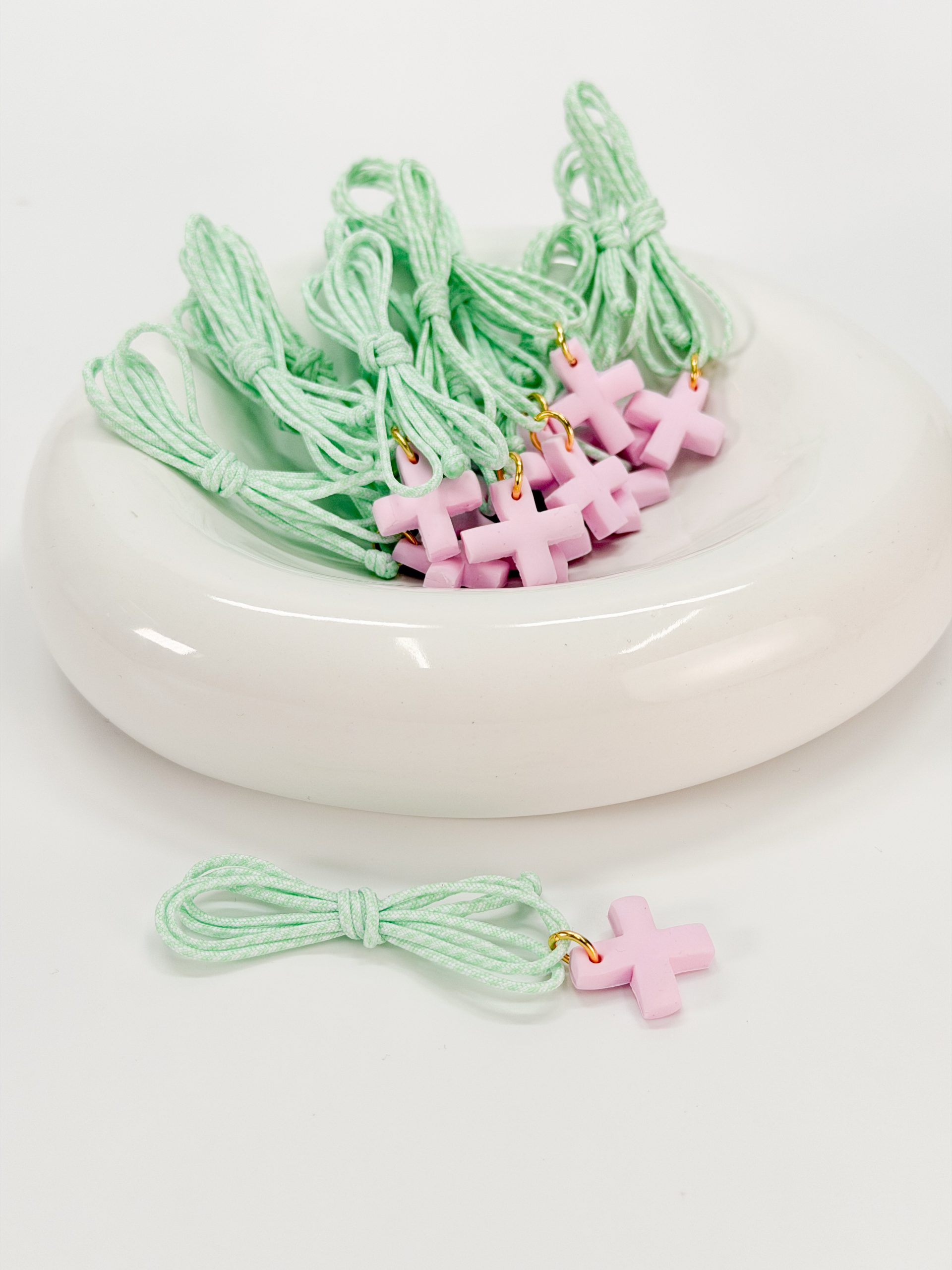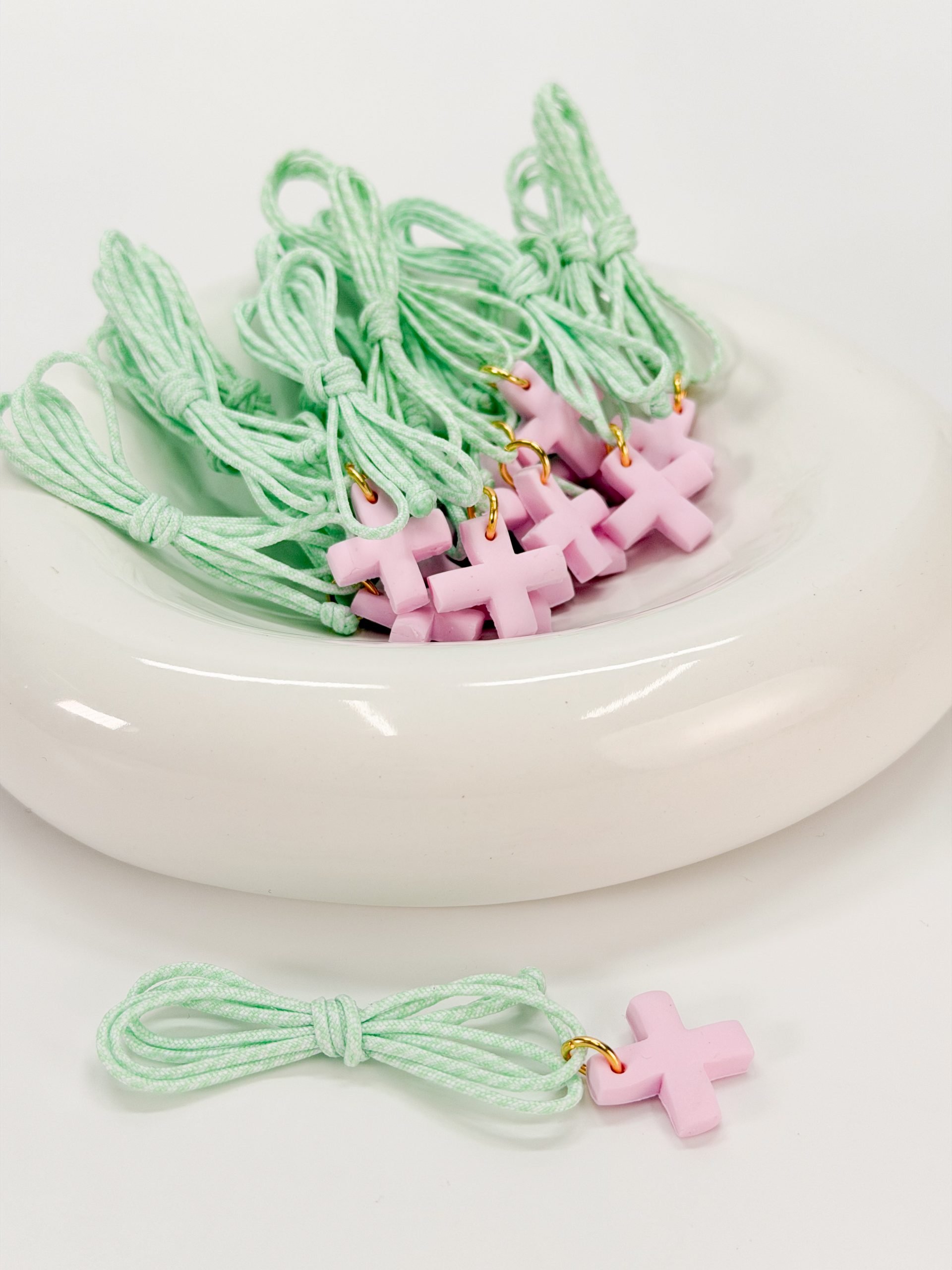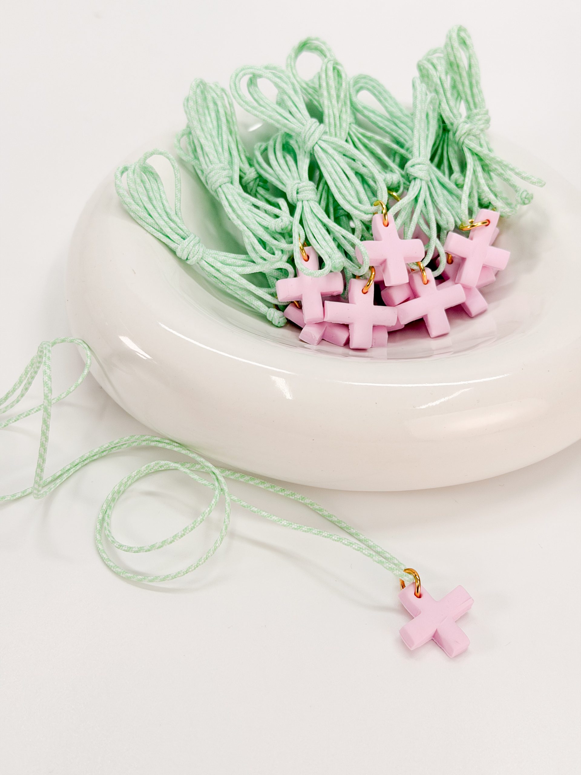 Μαρτυρικό κολιέ με δίχρωμο κορδόνι και σταυρό απο πολυμερικό πηλό.