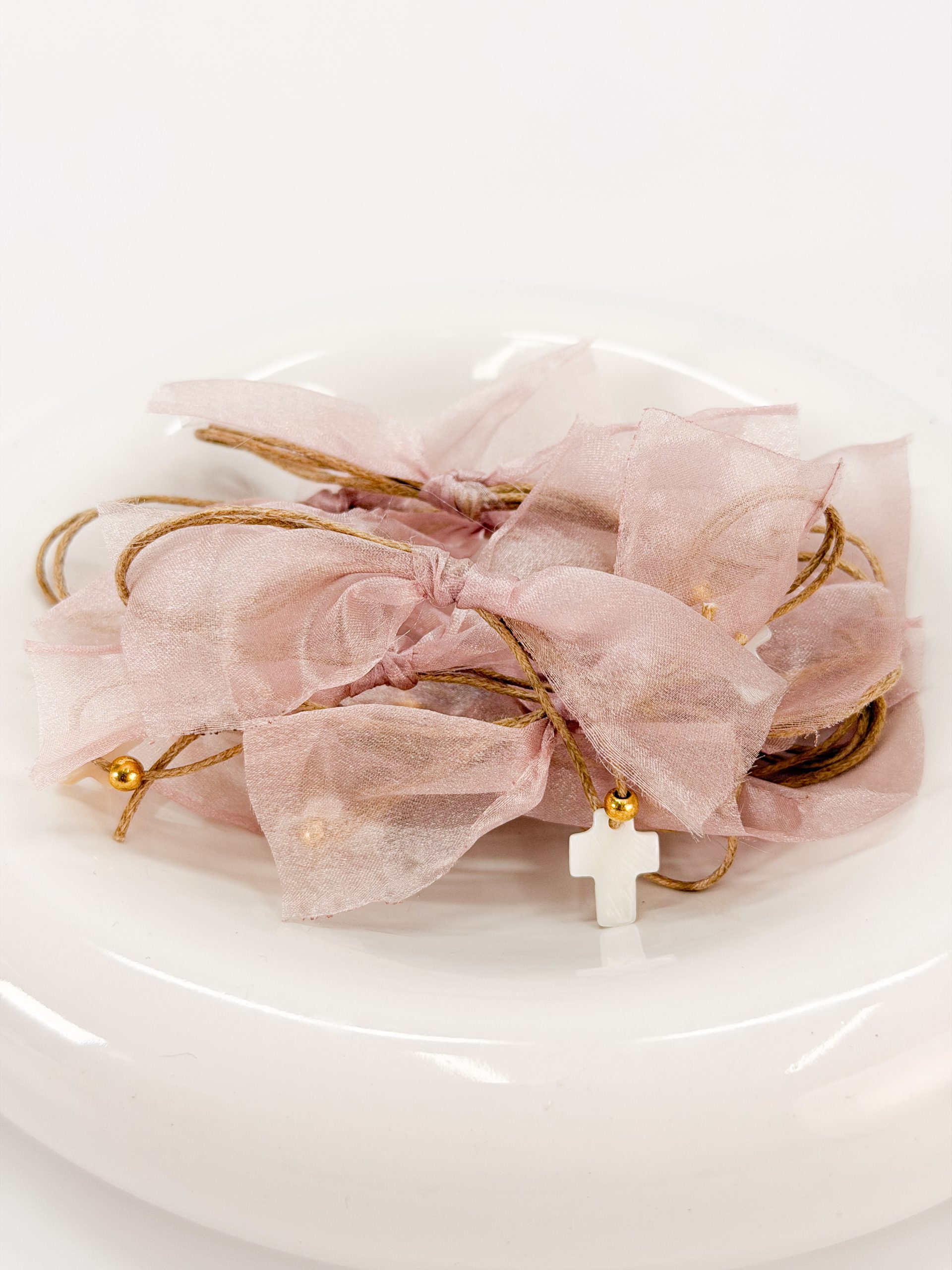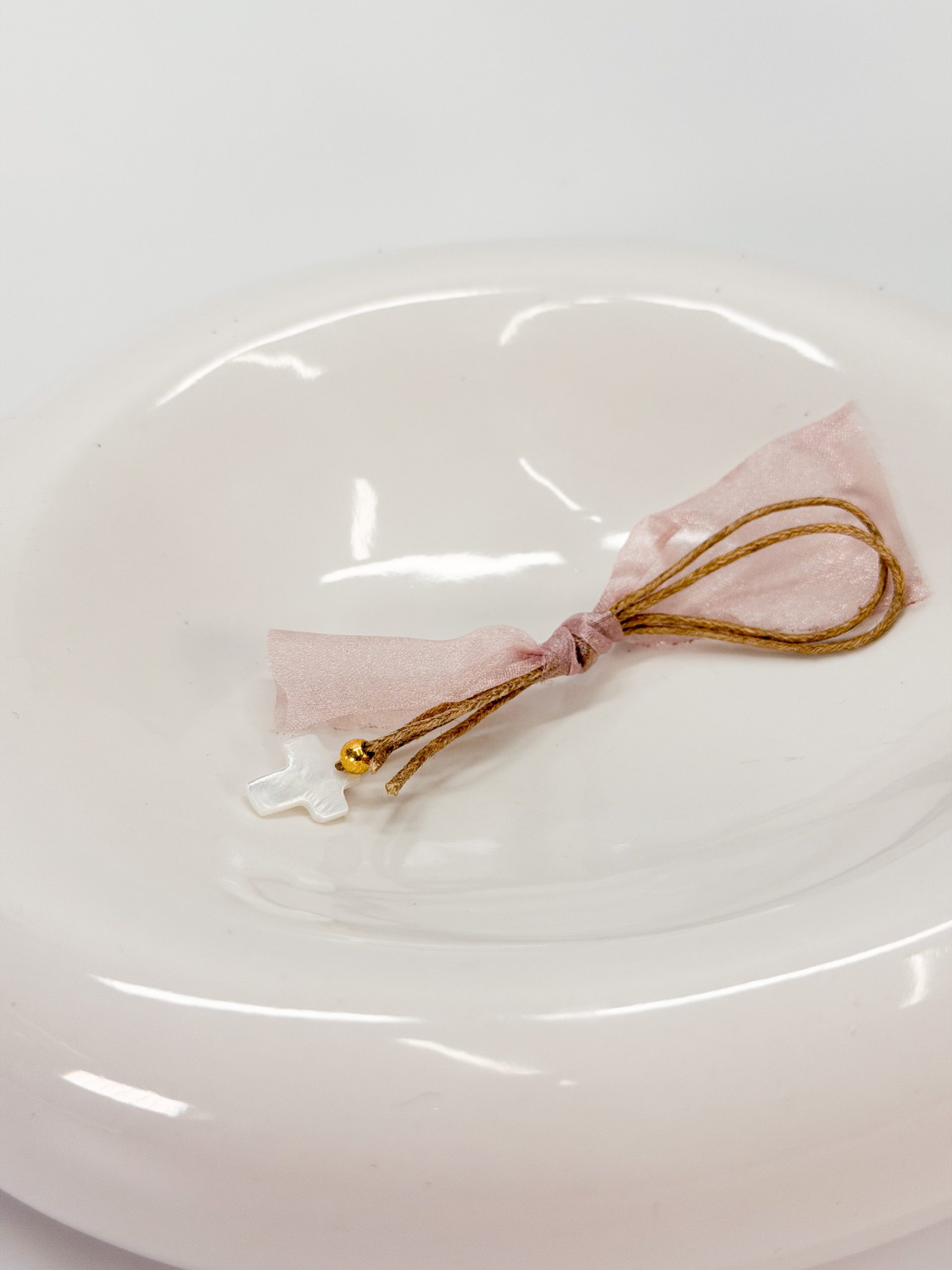 Μαρτυρικό πέτο με μπεζ κορδόνι,φίλντισι σταυρό και σάπιο μήλο φιογκάκι.