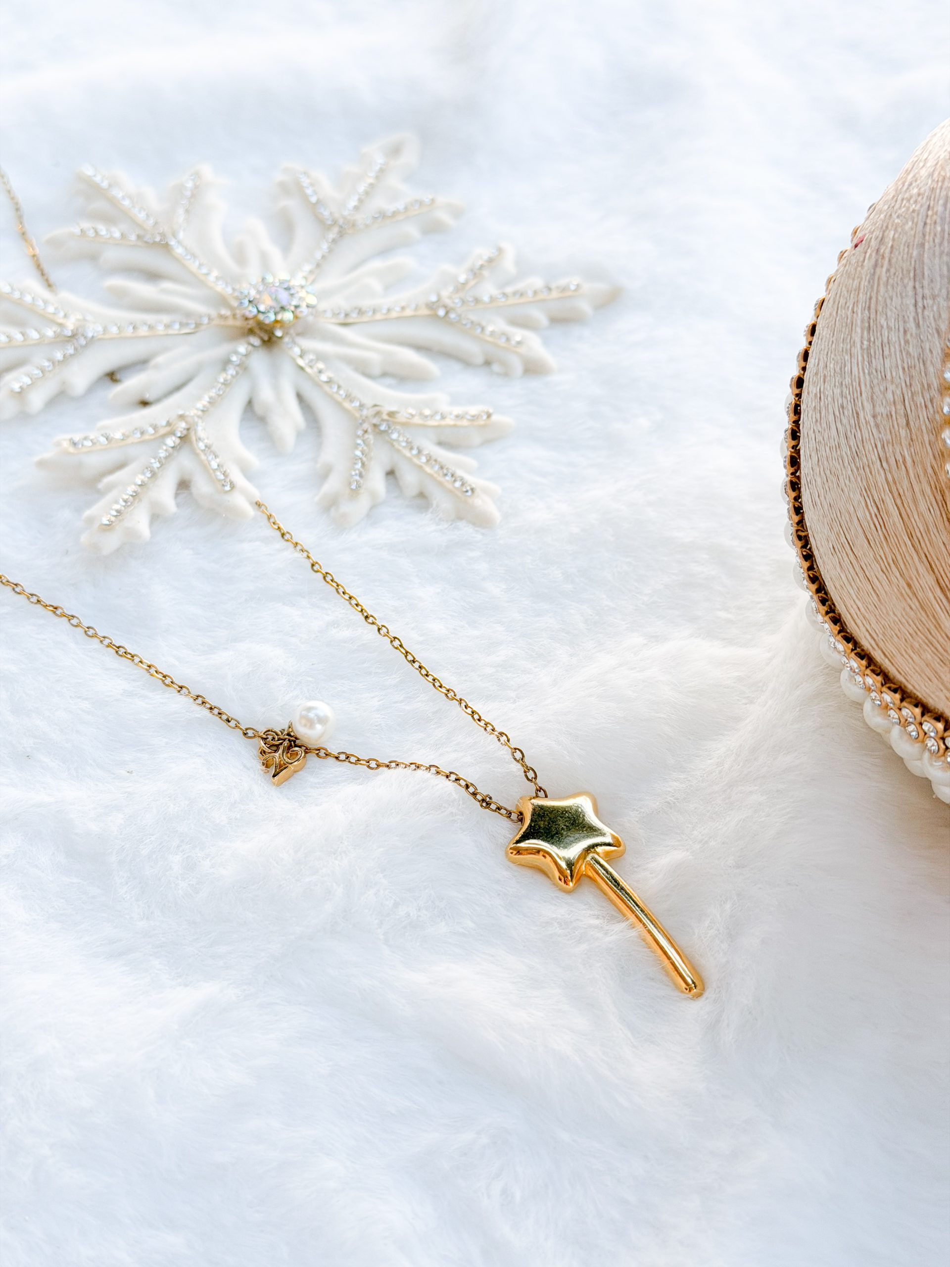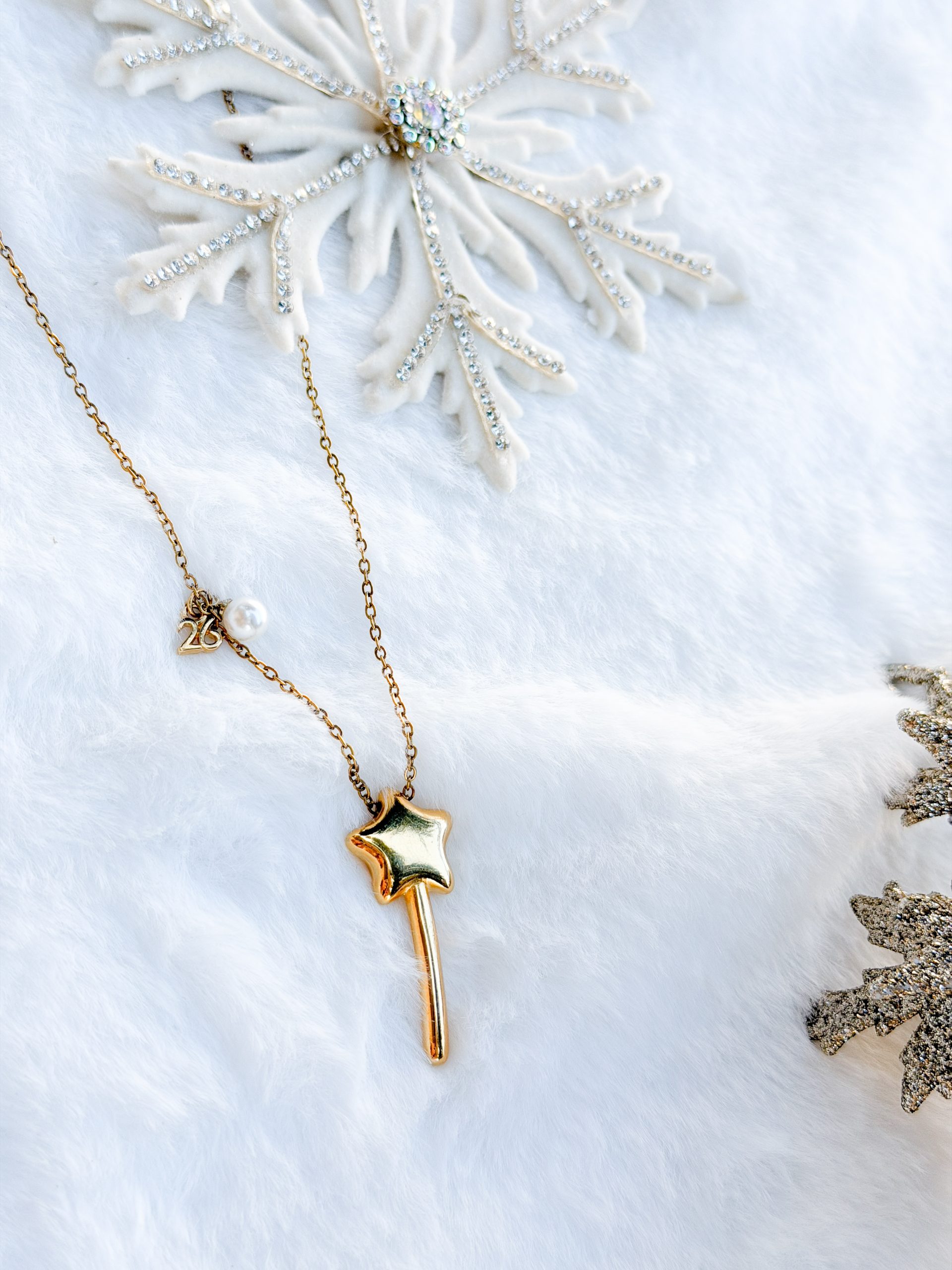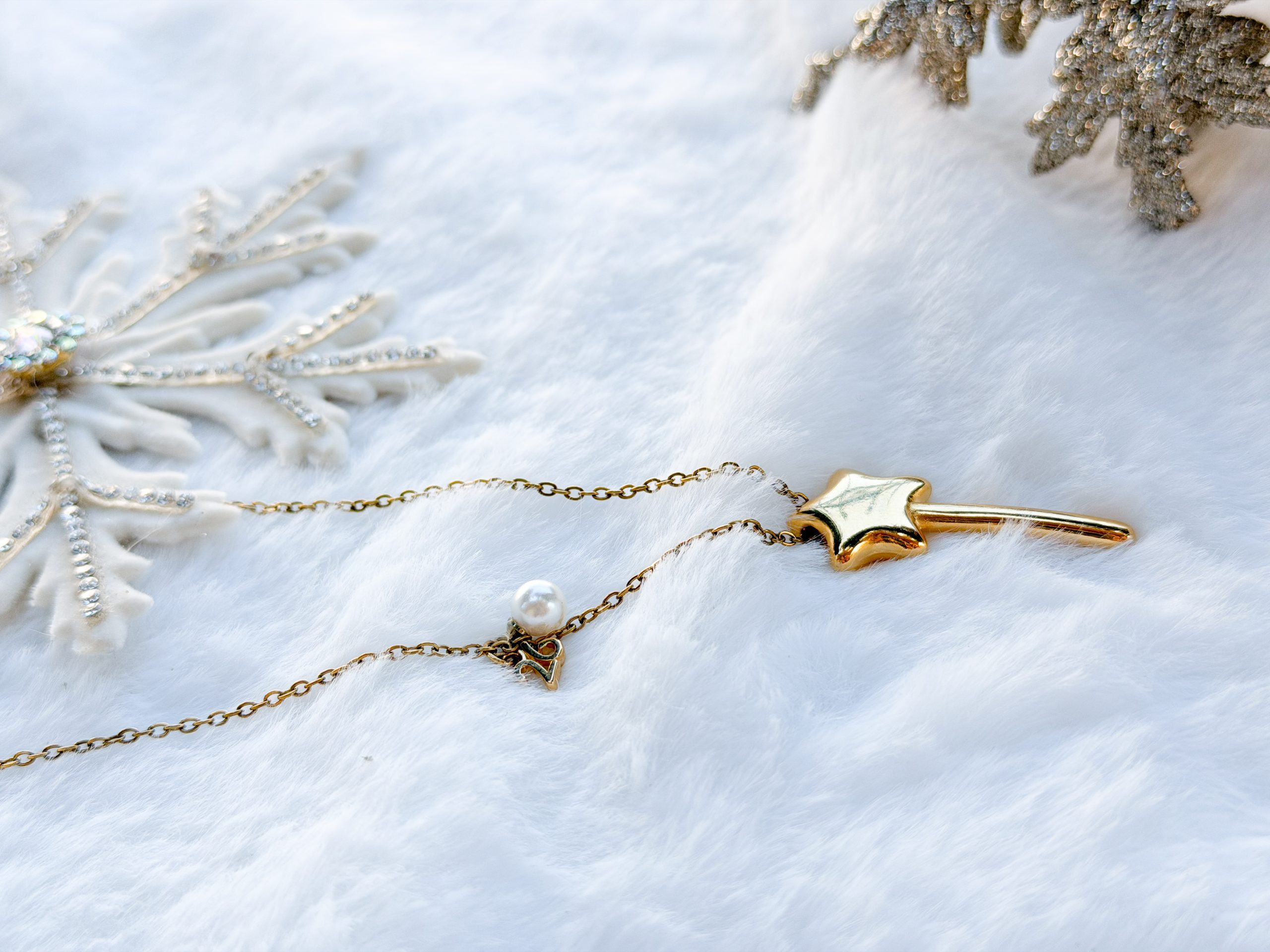 Κολιέ με επιχρυσωμένη αλυσίδα,μοτιφ αστεράκι,μοτιφ 26 και πέρλα.