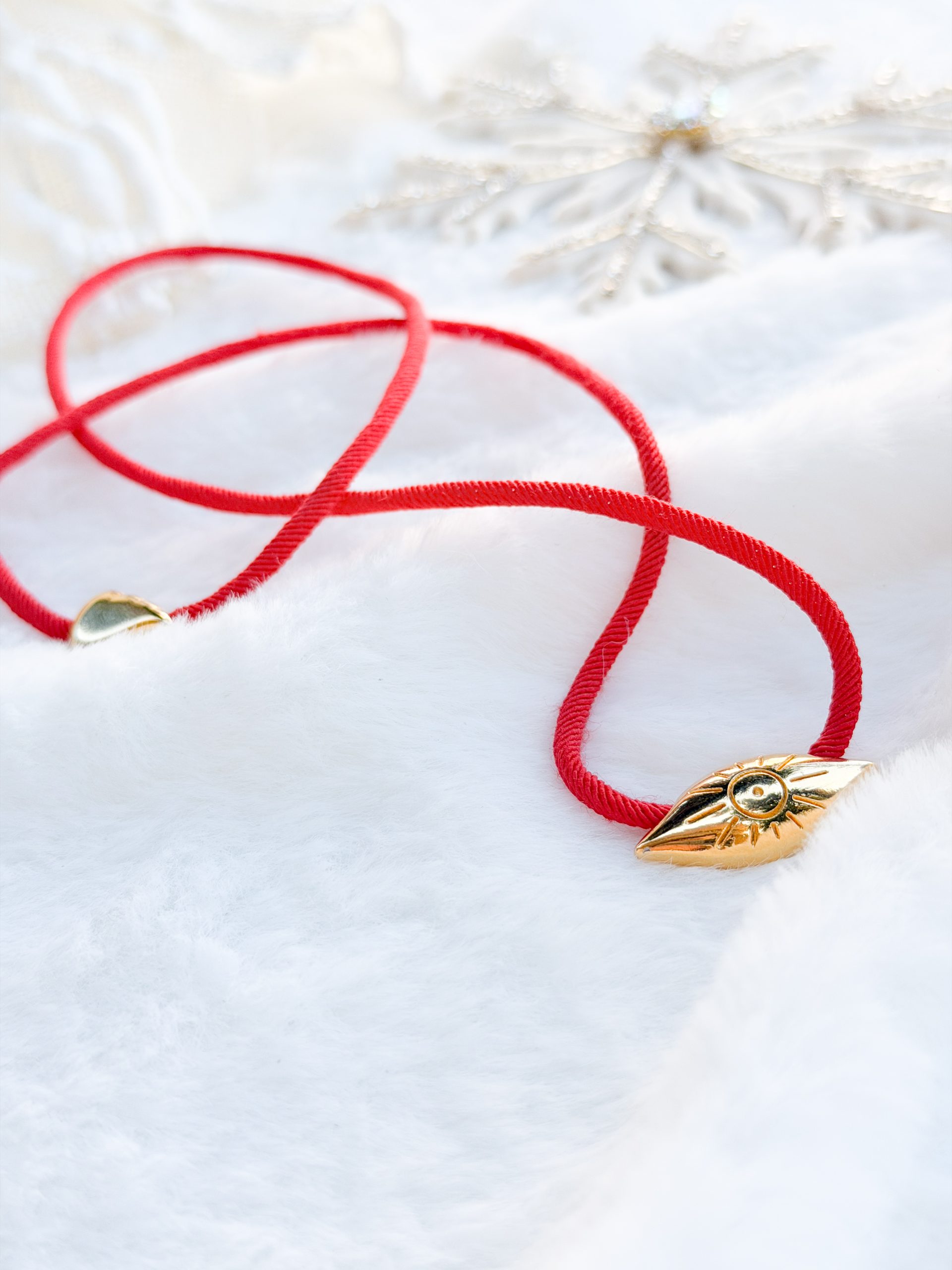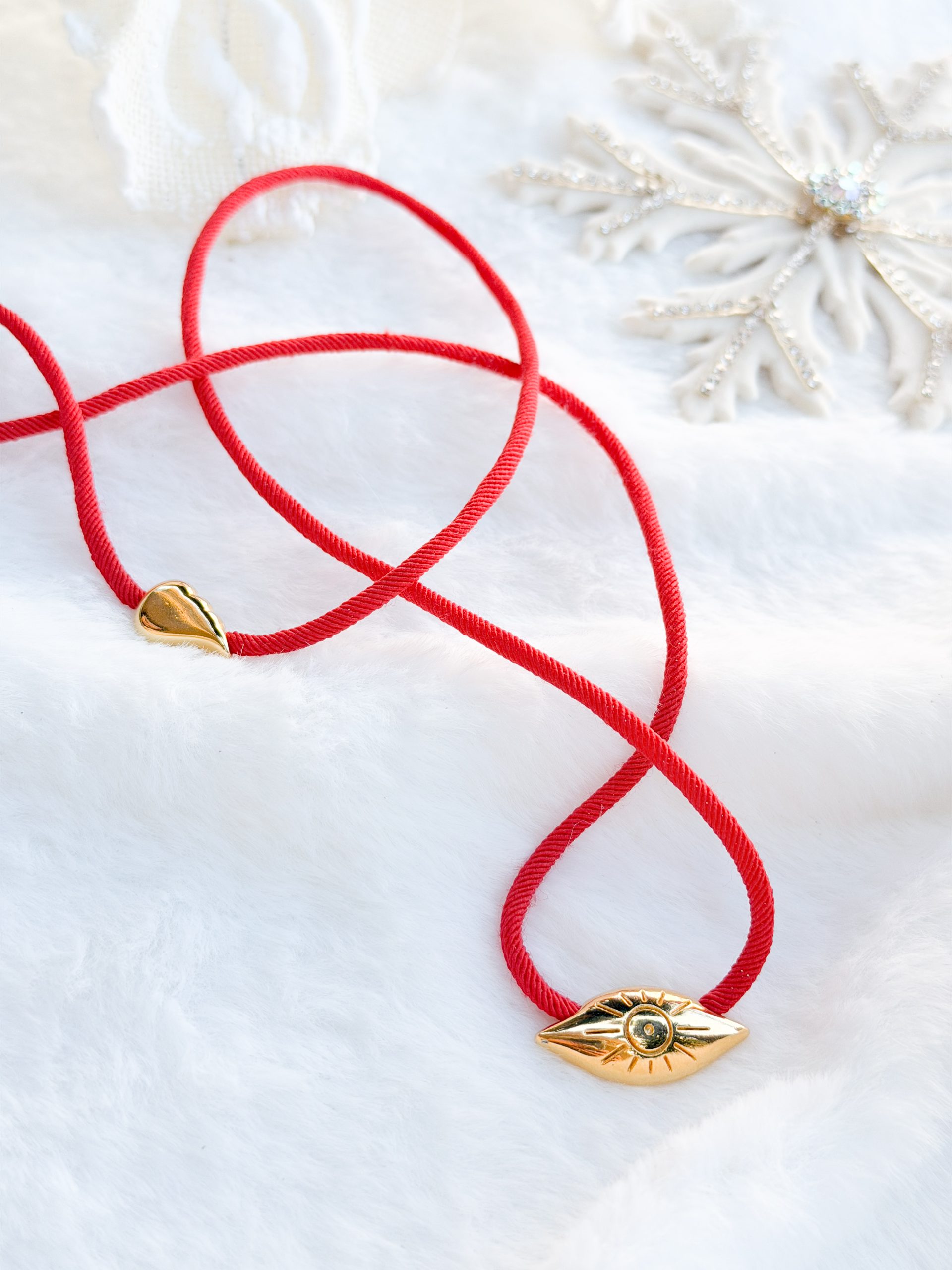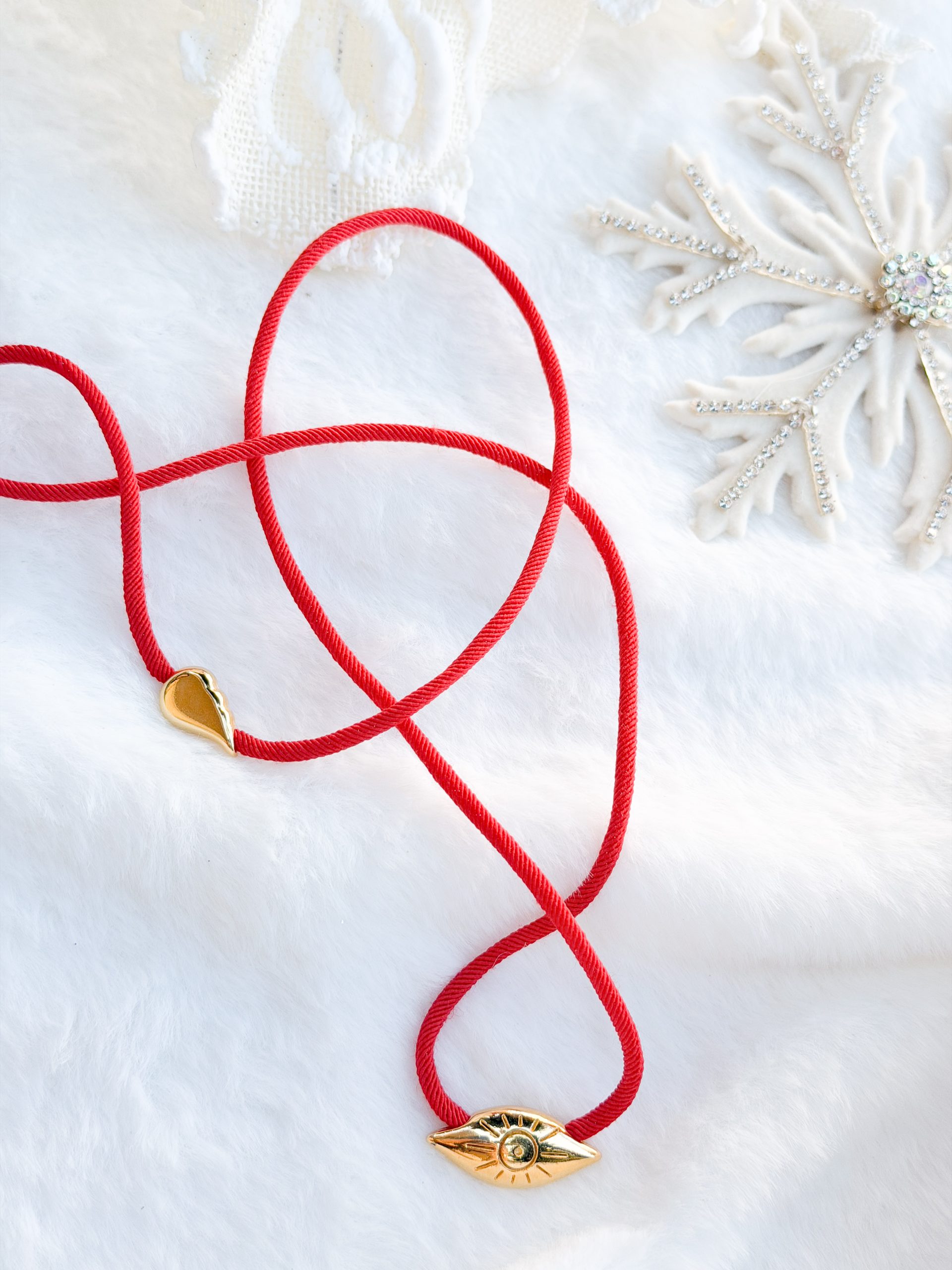 Κολιέ με κόκκινο κορδόνι και επιχρυσωμένο μοτίφ 26-μάτι.