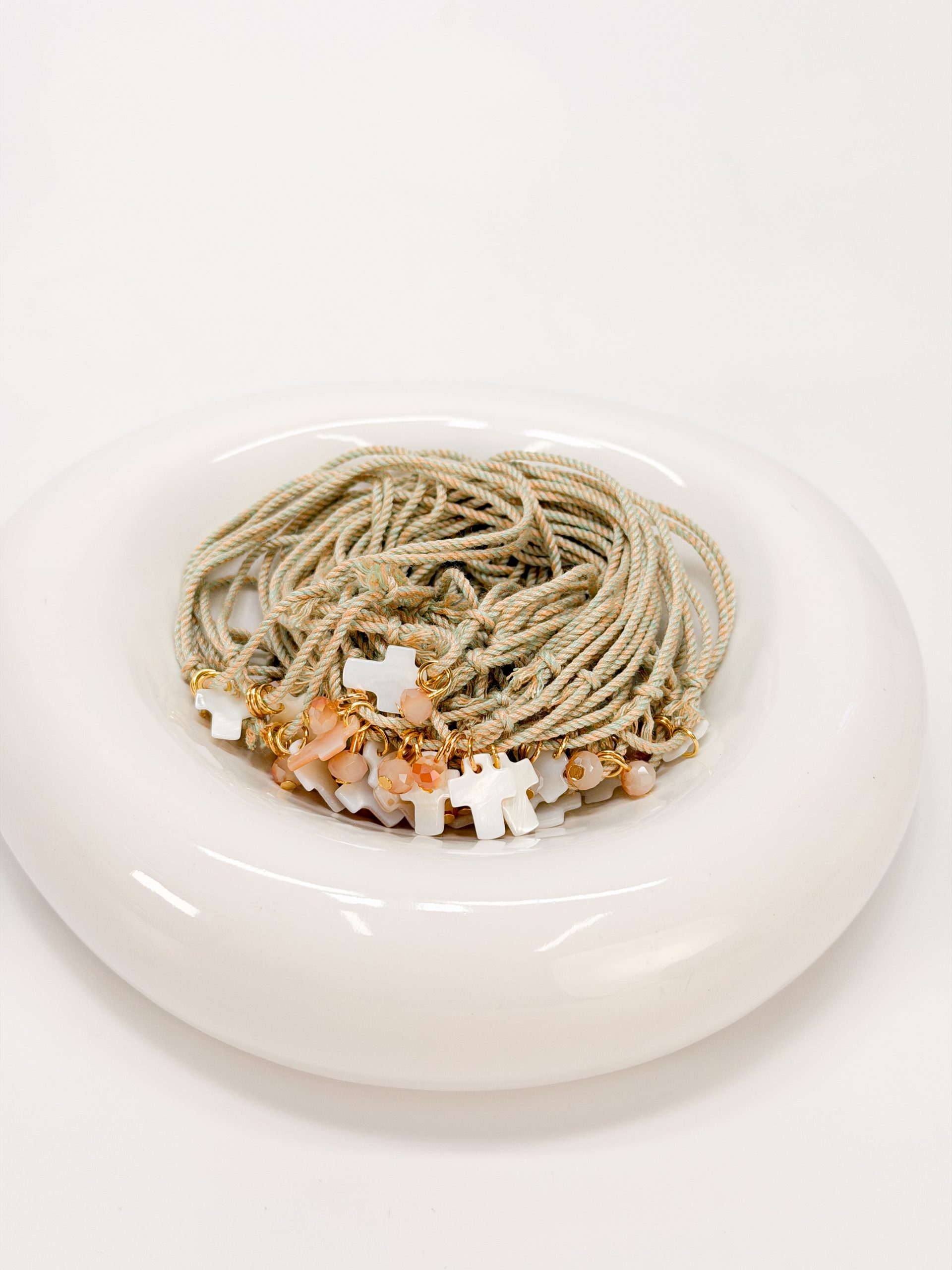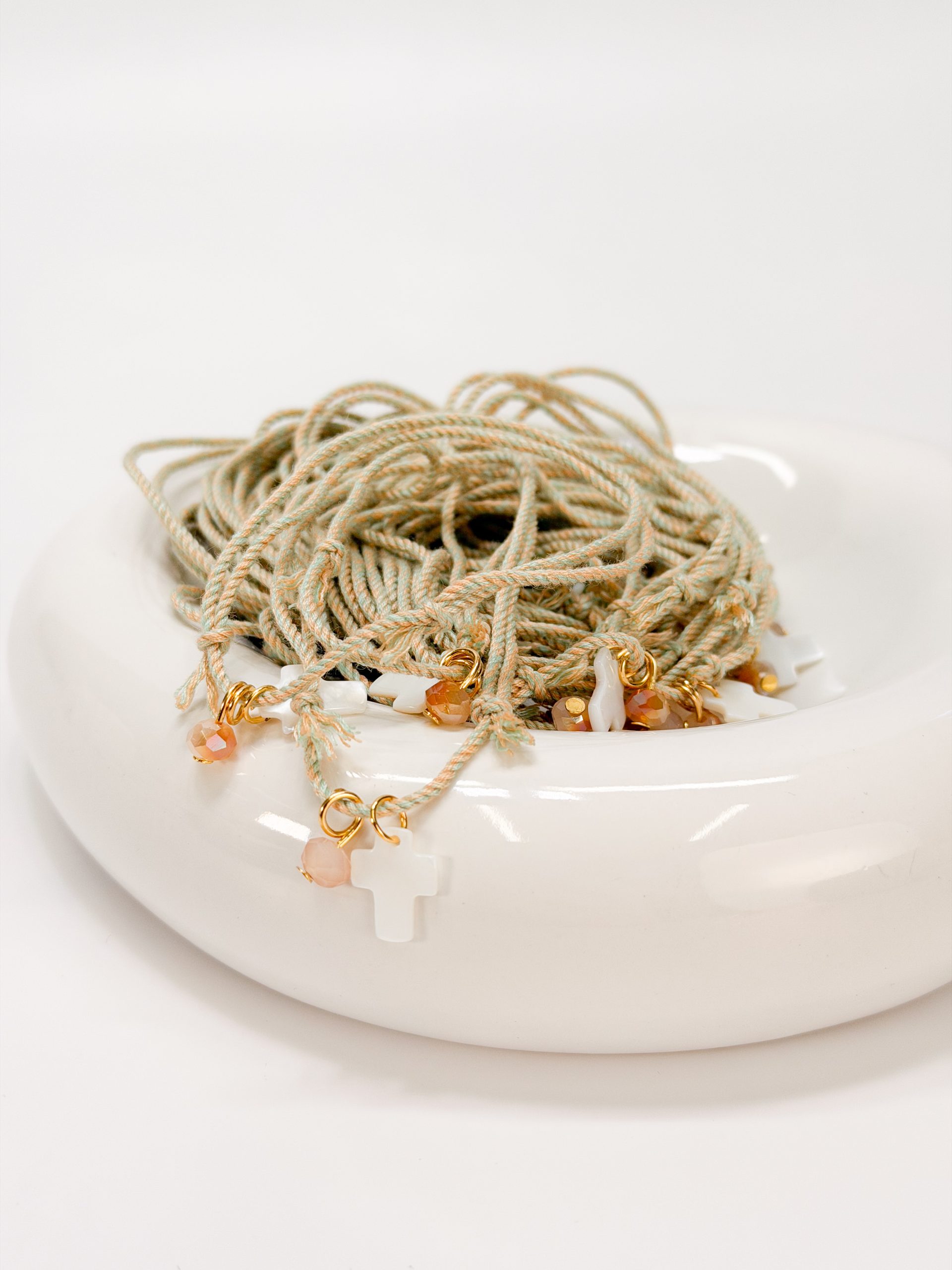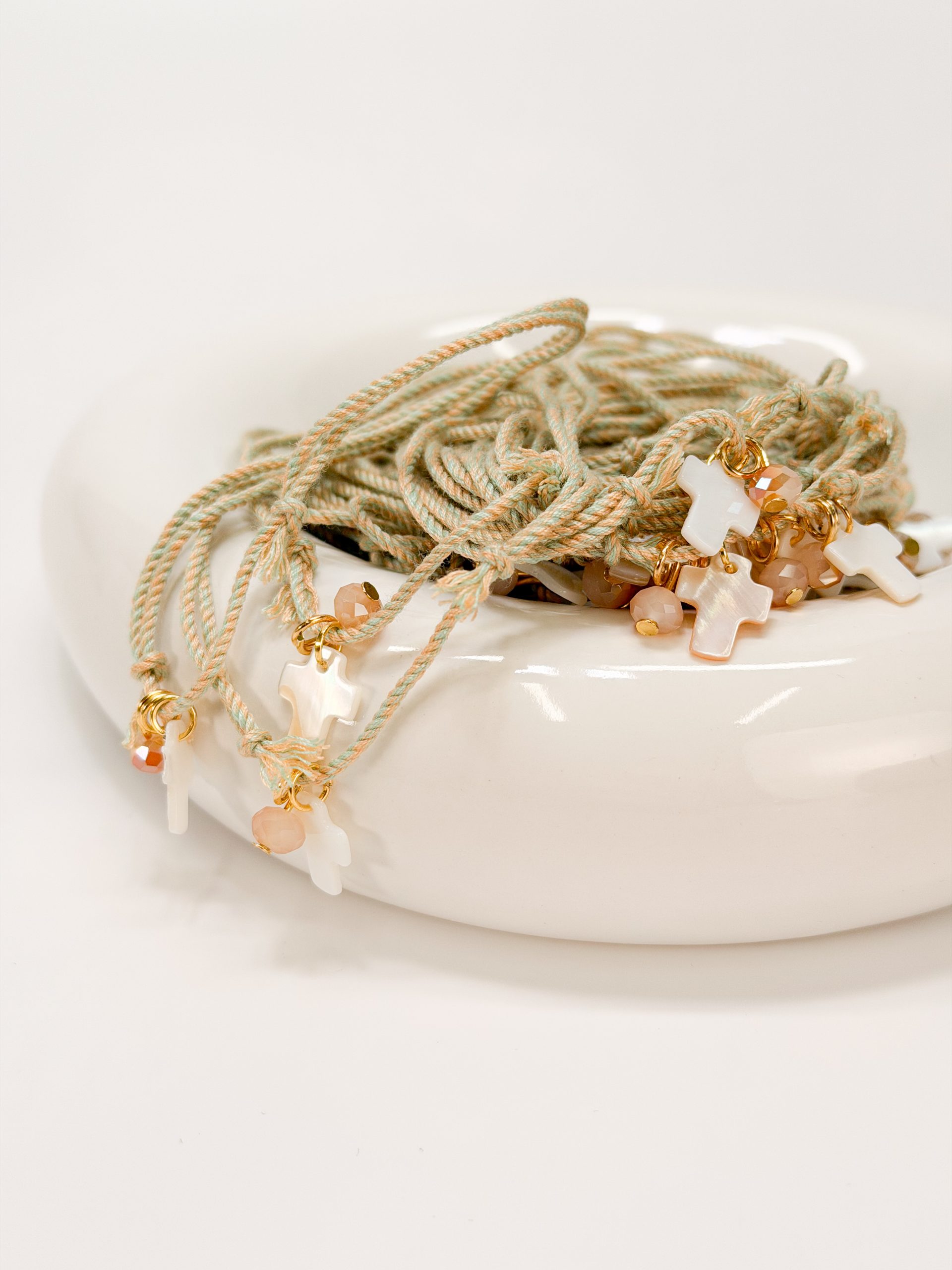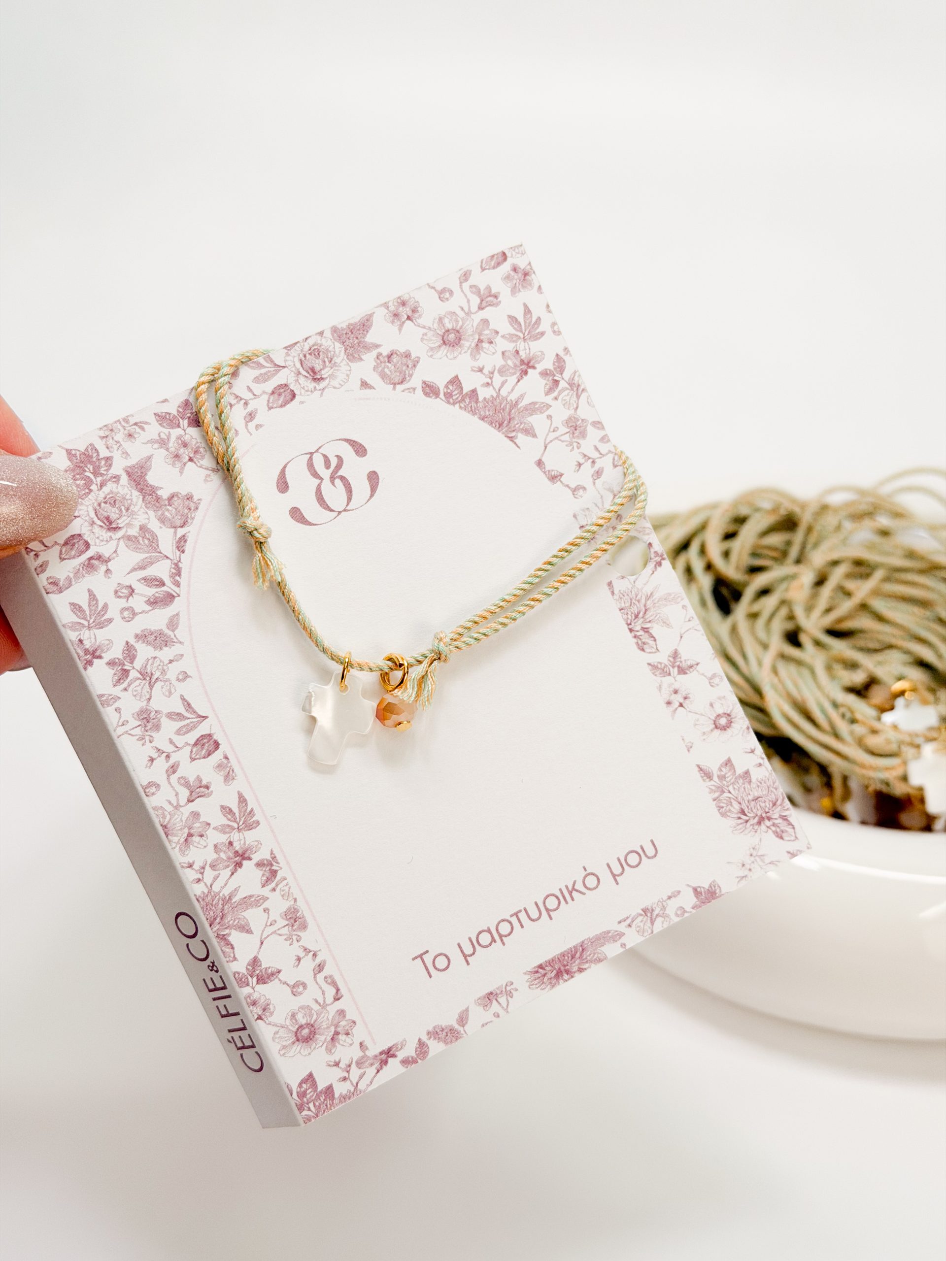 Μαρτυρικό βραχιόλι με δίχρωμο κορδόνι,σταυρό φίλντισι και κρύσταλλο δίχρωμο.