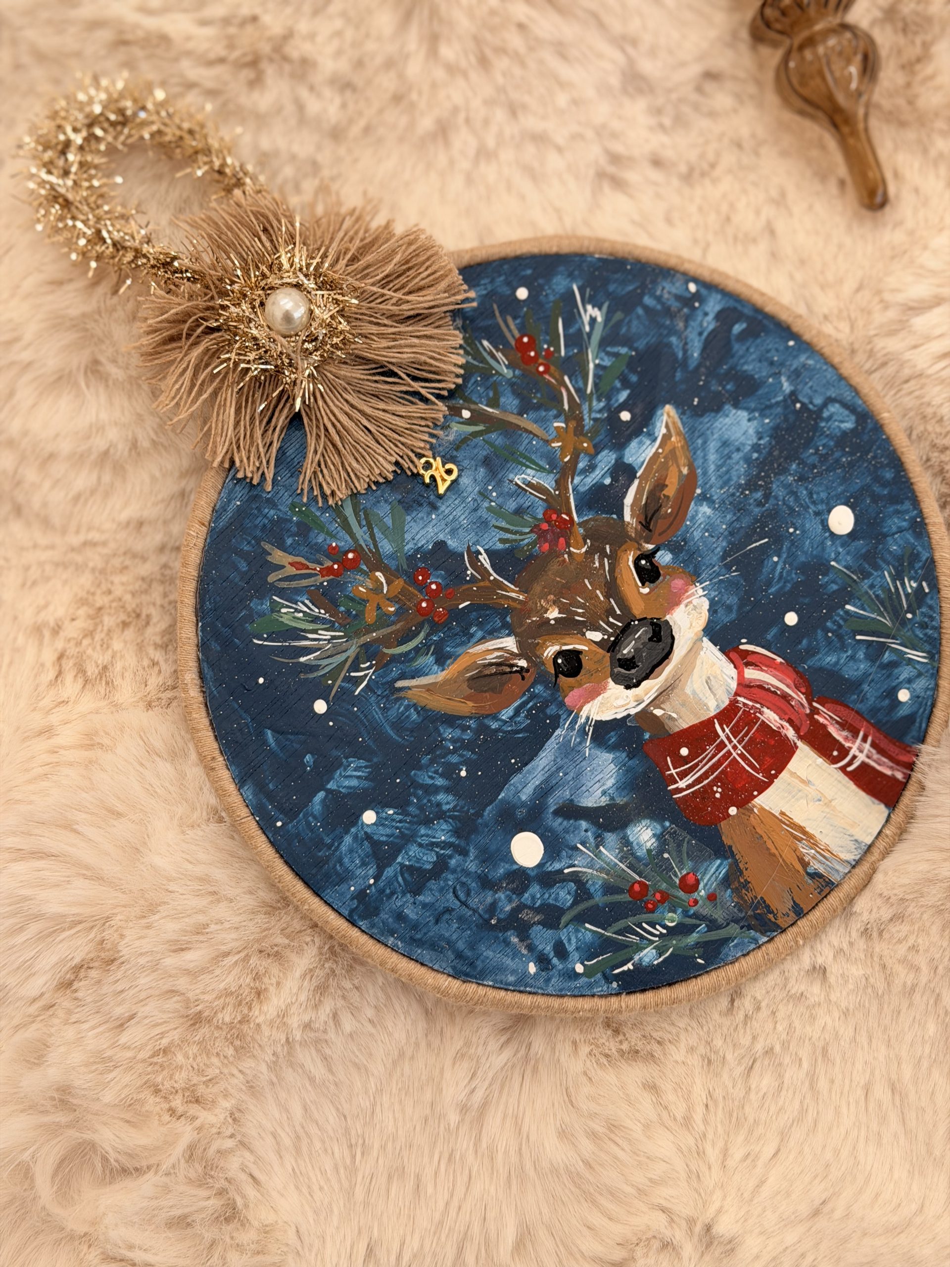 Ζωγραφιστό στολίδι με ταρανδάκι.Απο εμάς χρειάζονται περίπου 7 εργάσιμες.Μπορείτε να μας γράψετε στις παρατηρήσεις το όνομα που επιθυμείτε να γράφει.Για να ξεκινήσει η επεξεργασία θα χρειαστούμε μια προκαταβολή.