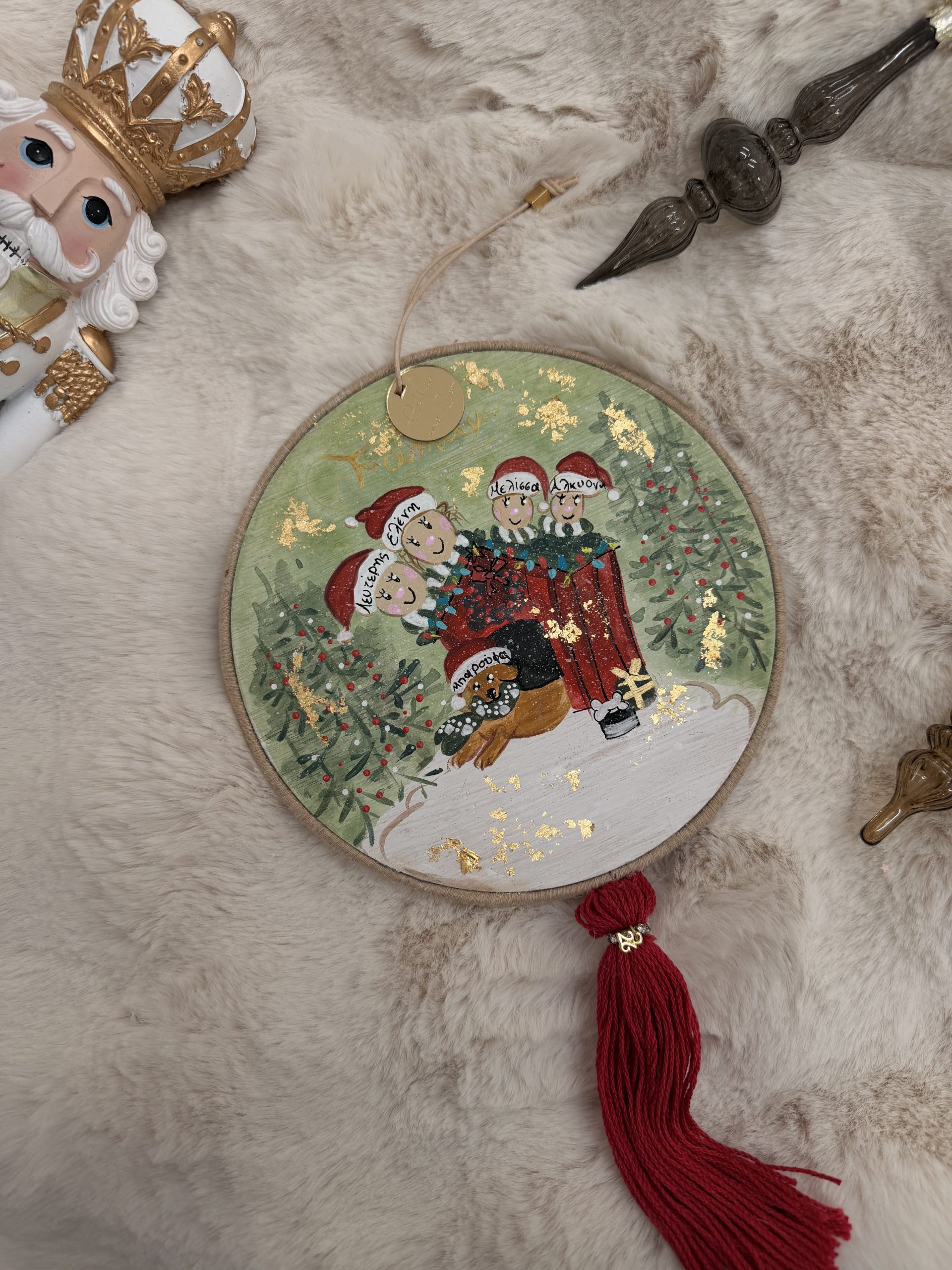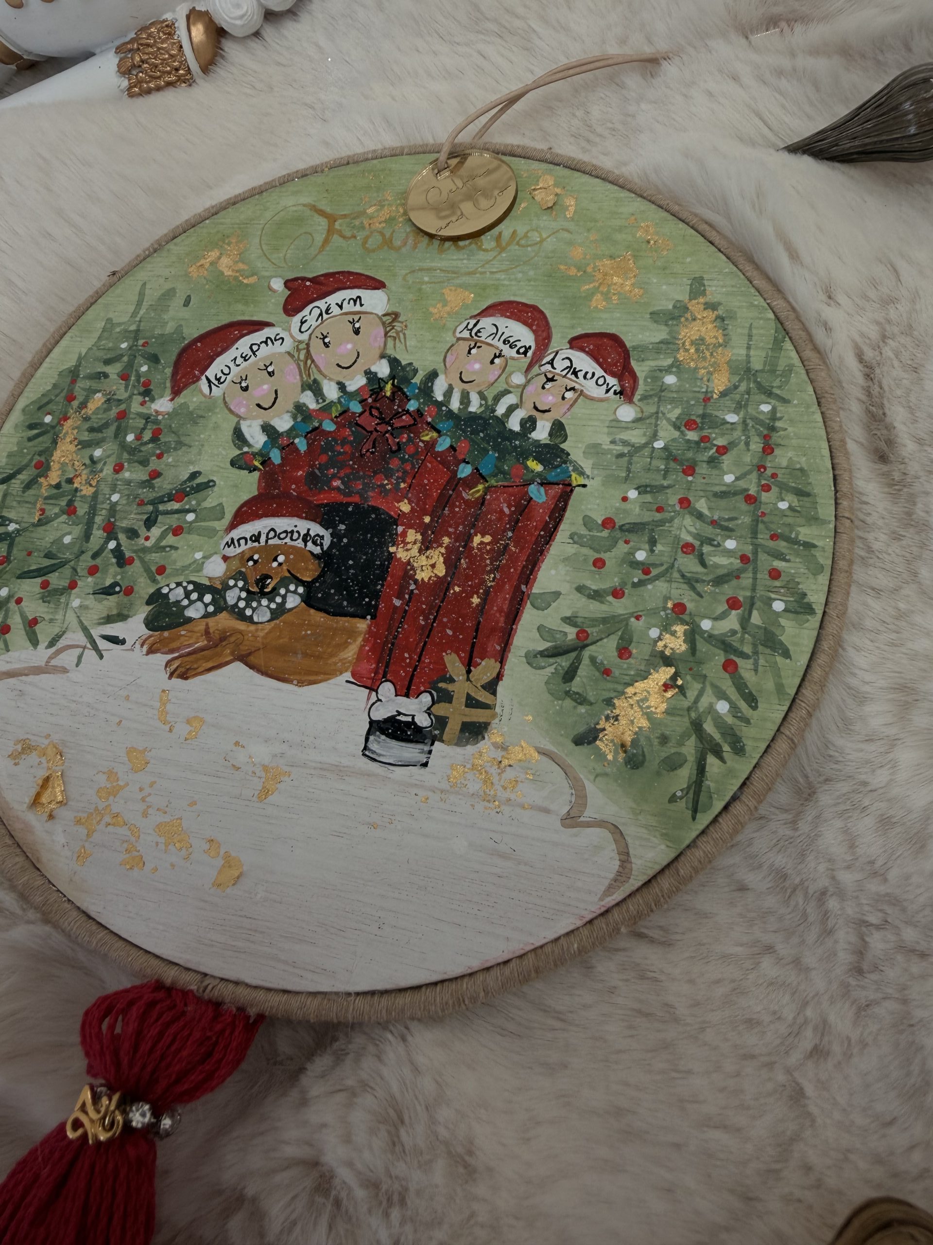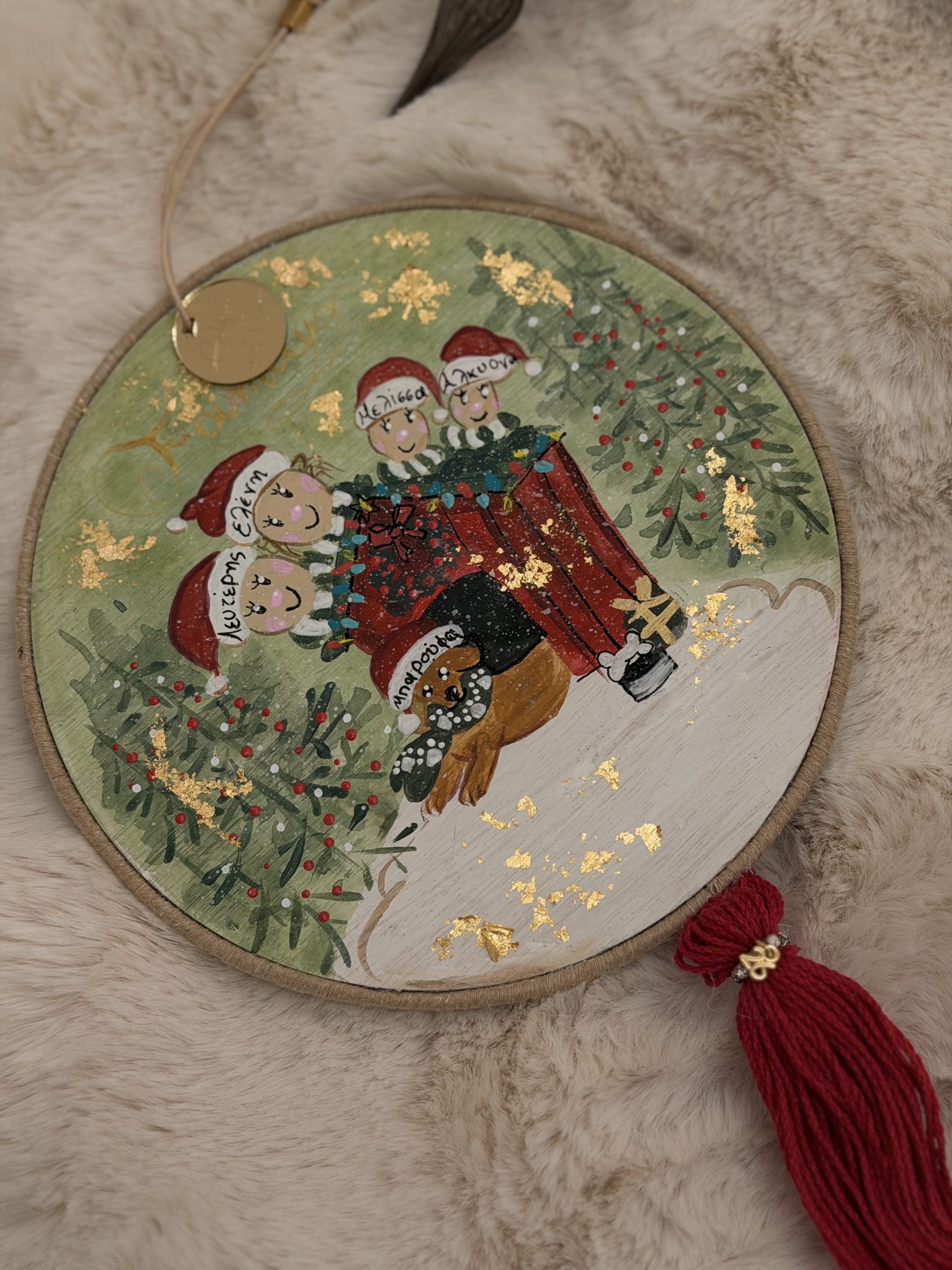 Στολίδι ζωγραφιστό οικογένειας με σκυλάκι.Απο εμάς χρειάζονται περίπου 7 εργάσιμες.Μπορείτε να μας γράψετε στις παρατηρήσεις τα όνοματα που επιθυμείτε να γράφουν.Για να ξεκινήσει η επεξεργασία θα χρειαστούμε μια προκαταβολή.