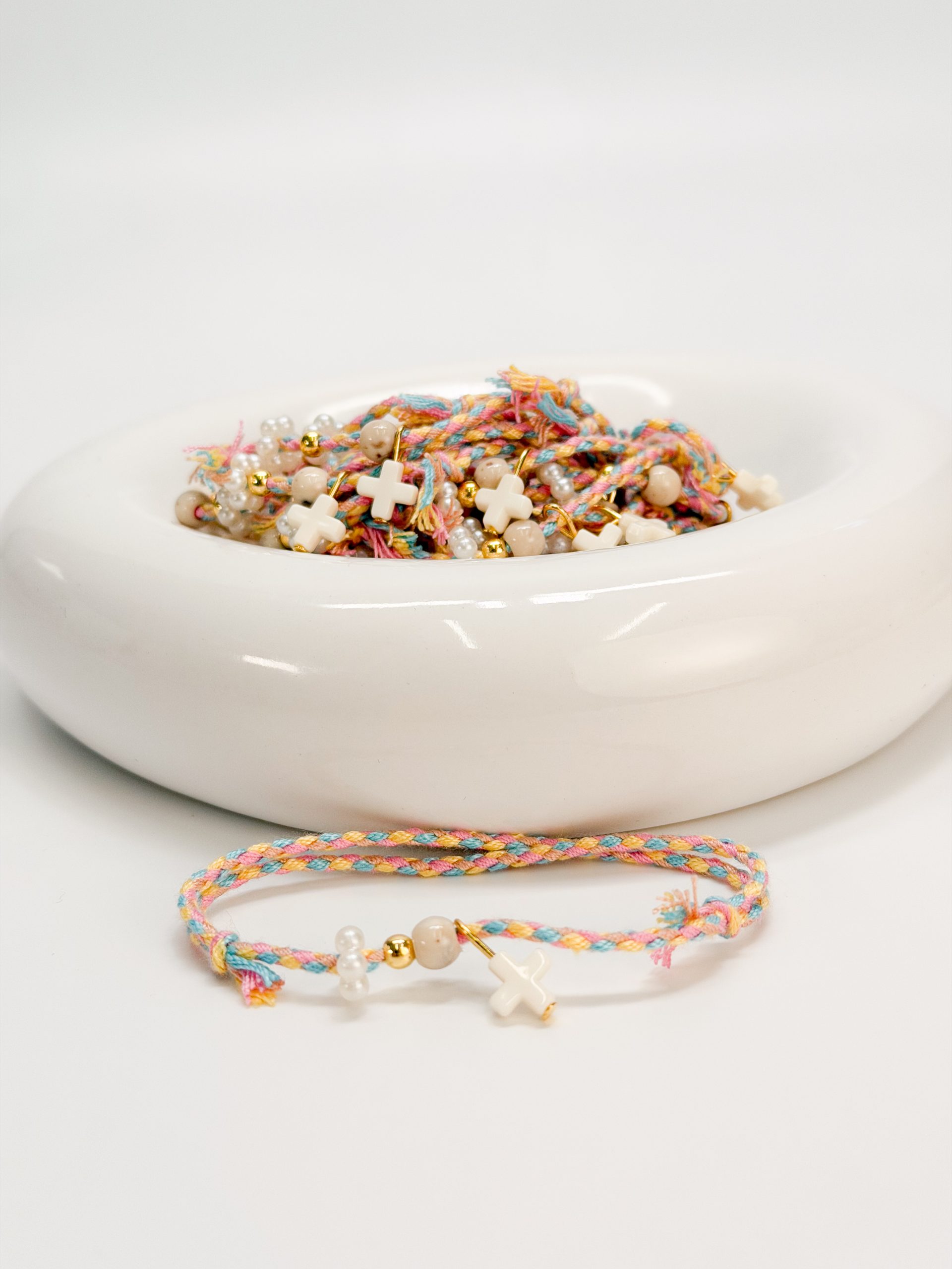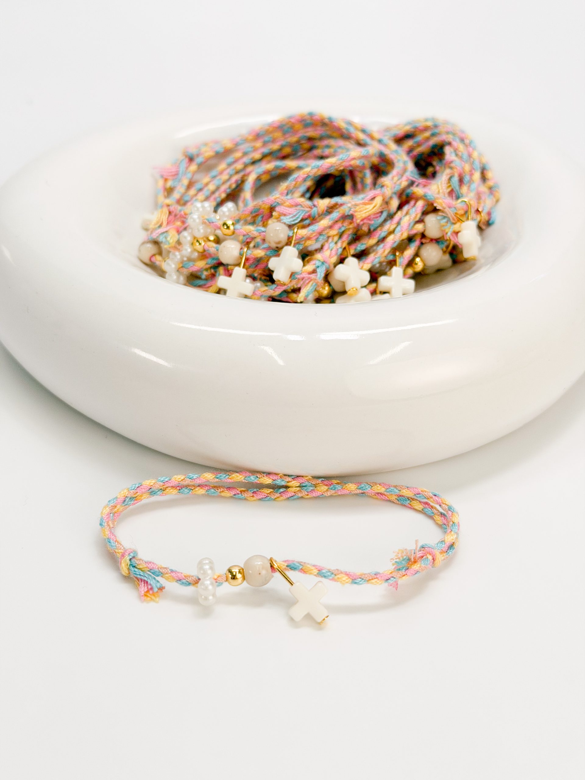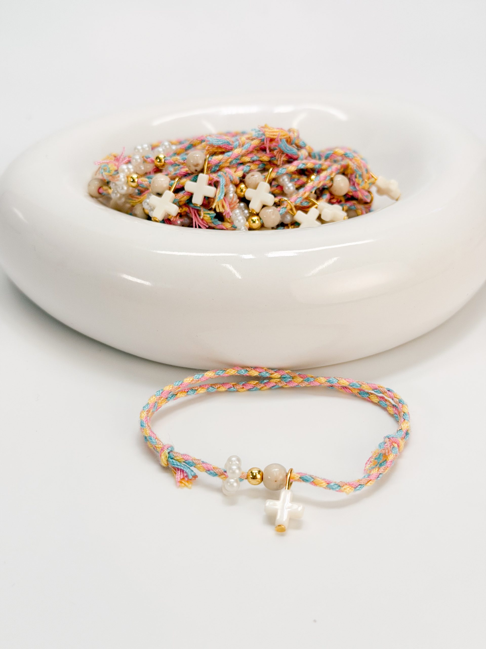 Μαρτυρικό βραχιόλι με πολύχρωμο κορδόνι,ακρυλικό σταυρό και χάντρες.